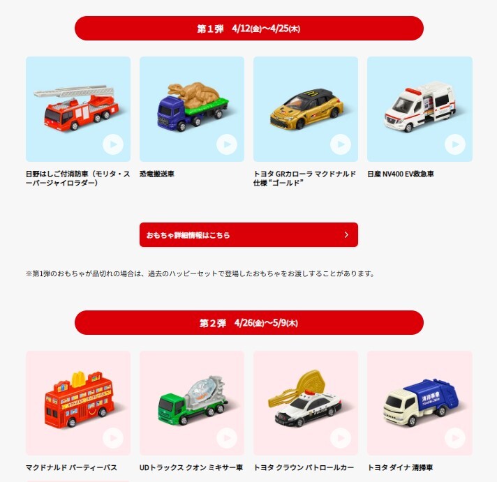マクドナルド ハッピーセット トミカ 2024 第1弾 4種 第2弾 4種 プレイングシート セット