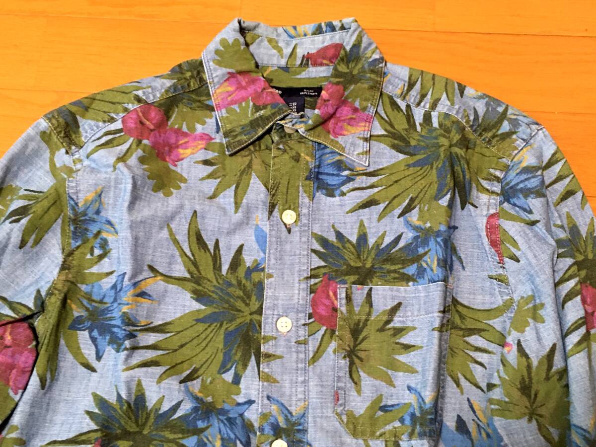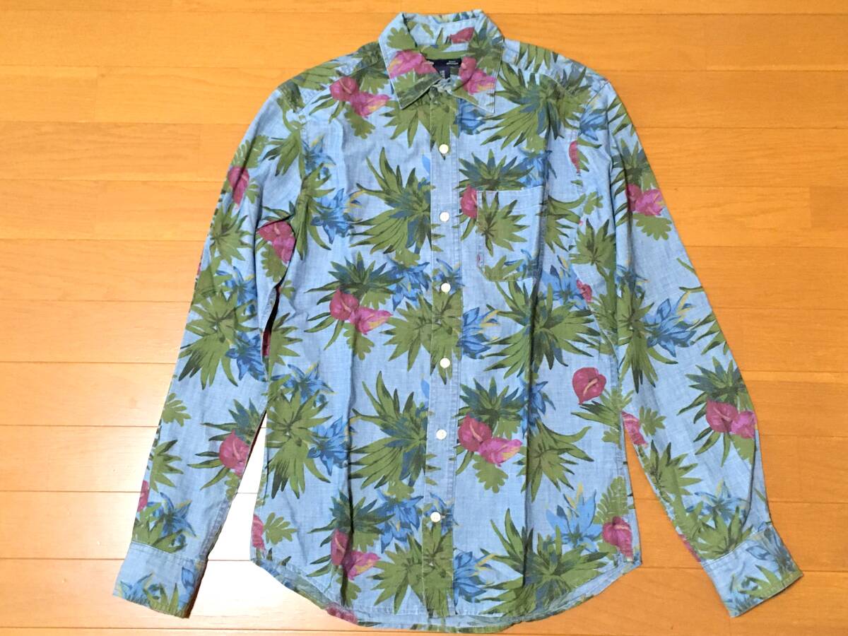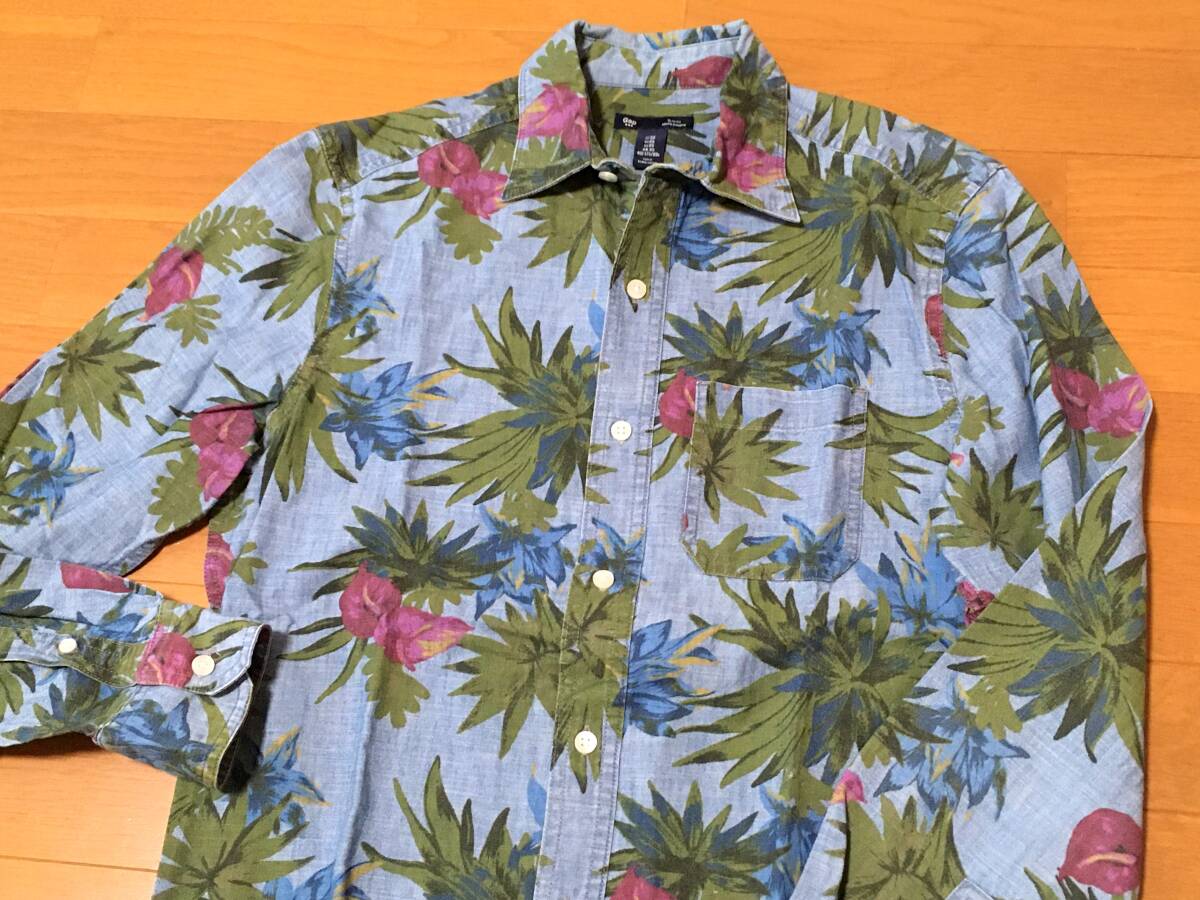 Gap 総柄 シャンブレー 長袖 シャツ XS M程度 スリムフィット 綿 花柄 ボタニカル 中古 ギャップ アロハ ダンガリー デニム メンズ