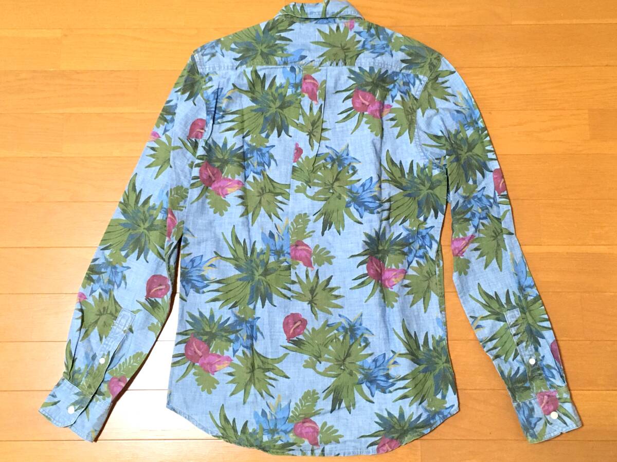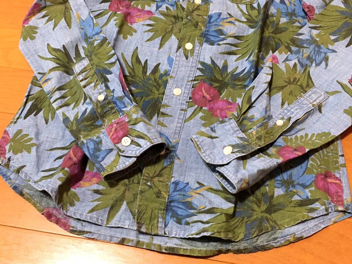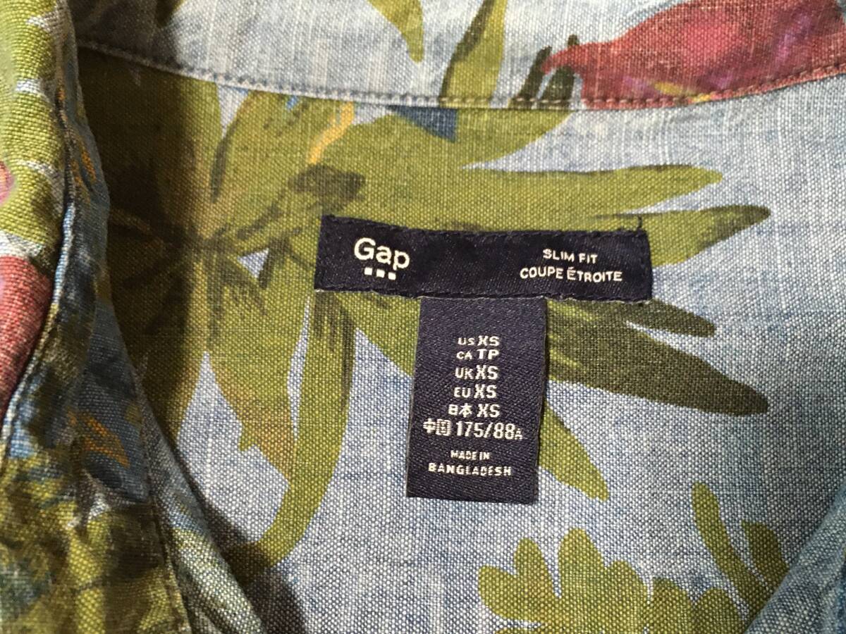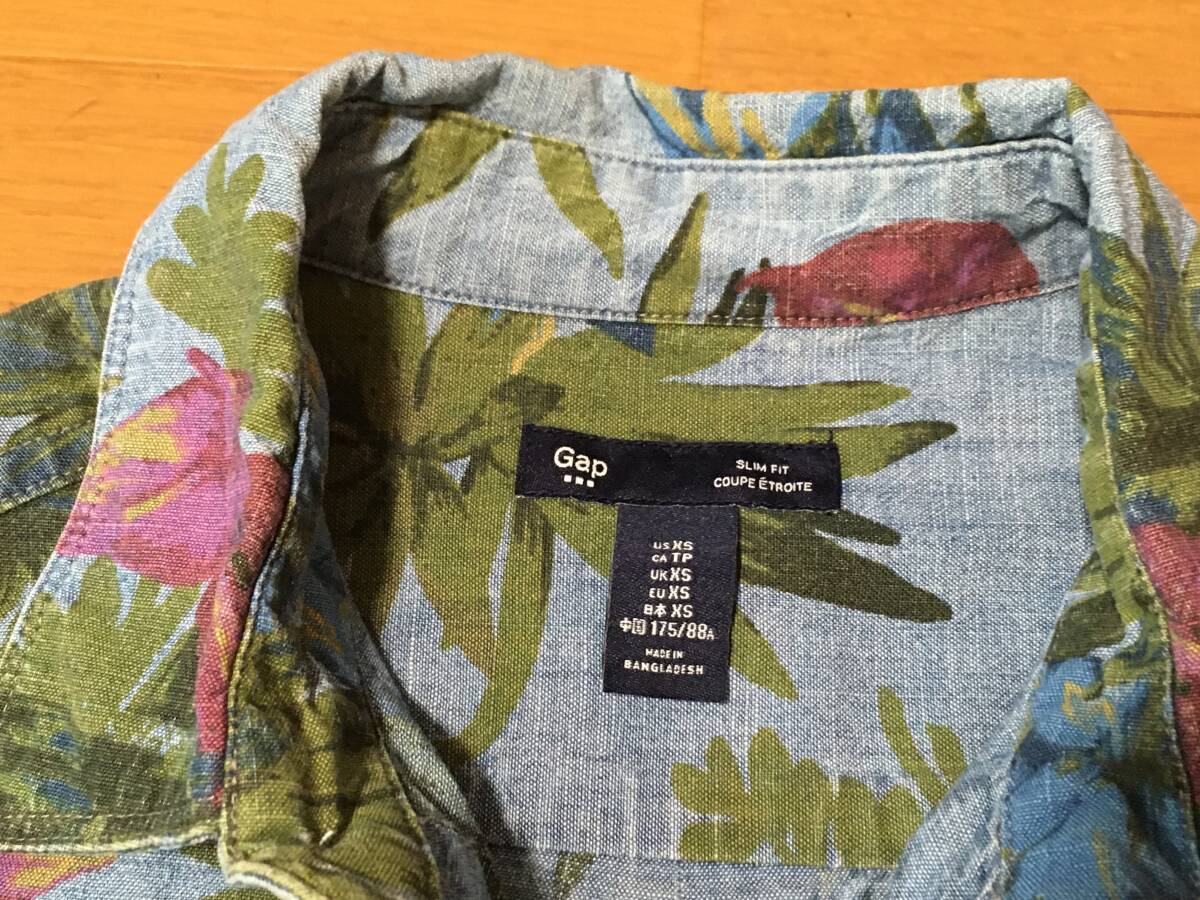 Gap 総柄 シャンブレー 長袖 シャツ XS M程度 スリムフィット 綿 花柄 ボタニカル 中古 ギャップ アロハ ダンガリー デニム メンズ