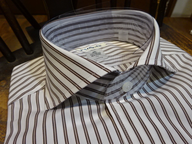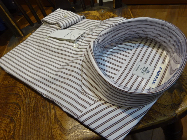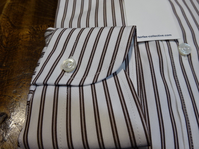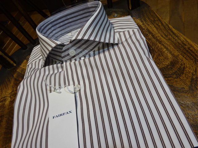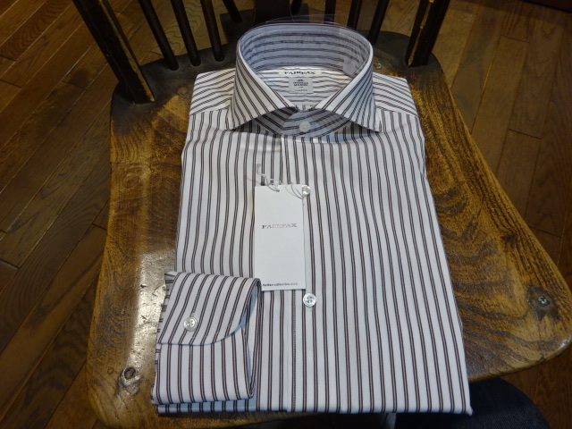 ☆ | 品未使用です。人気ブランド、フェアファクスの長袖シャツです。素材はコットン100%、オールシーズン着て頂けます。トーマスメイソン社製の生地です。ネック43センチ程です。安心の日本製です。白ベース系のストライプ柄になります。カラーは人気のカッタウェーカラーです。お洒落シャツですね!定価は25300円です。 | ★ | |||||||