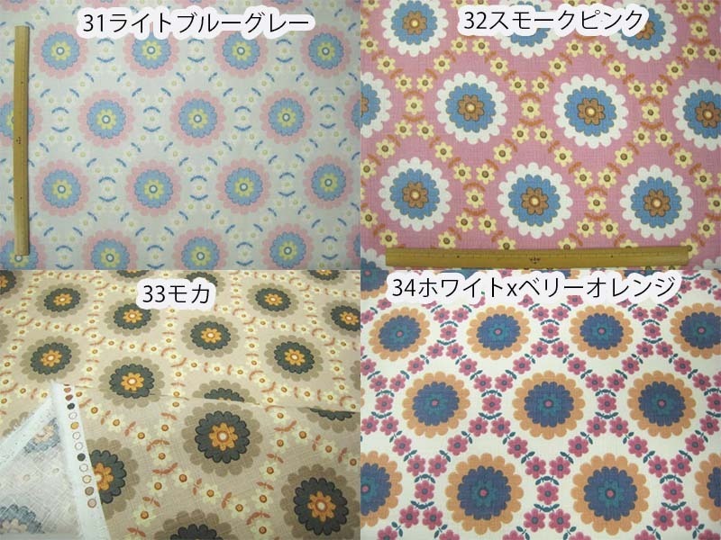 人気のアンティーコ花柄に配色を加えて新色が登場致しました。 ロングセラー定番人気のレトロでポップなフラワープリントがかわいいカラーで登場。スラブ織りの生地で北欧風の花柄が大人気。前回同様、エプロンなどの洋服やバッグ、インテリアなどにも雰囲気抜群でお薦めです。 ホワイトの地色はキバタの状態により、多少の色味に違いがでる場合がございます。