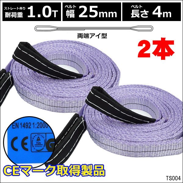 CE規格品 スリングベルト 幅25mm×4m ストレート吊 1T【2本セット】(新品・未使用)