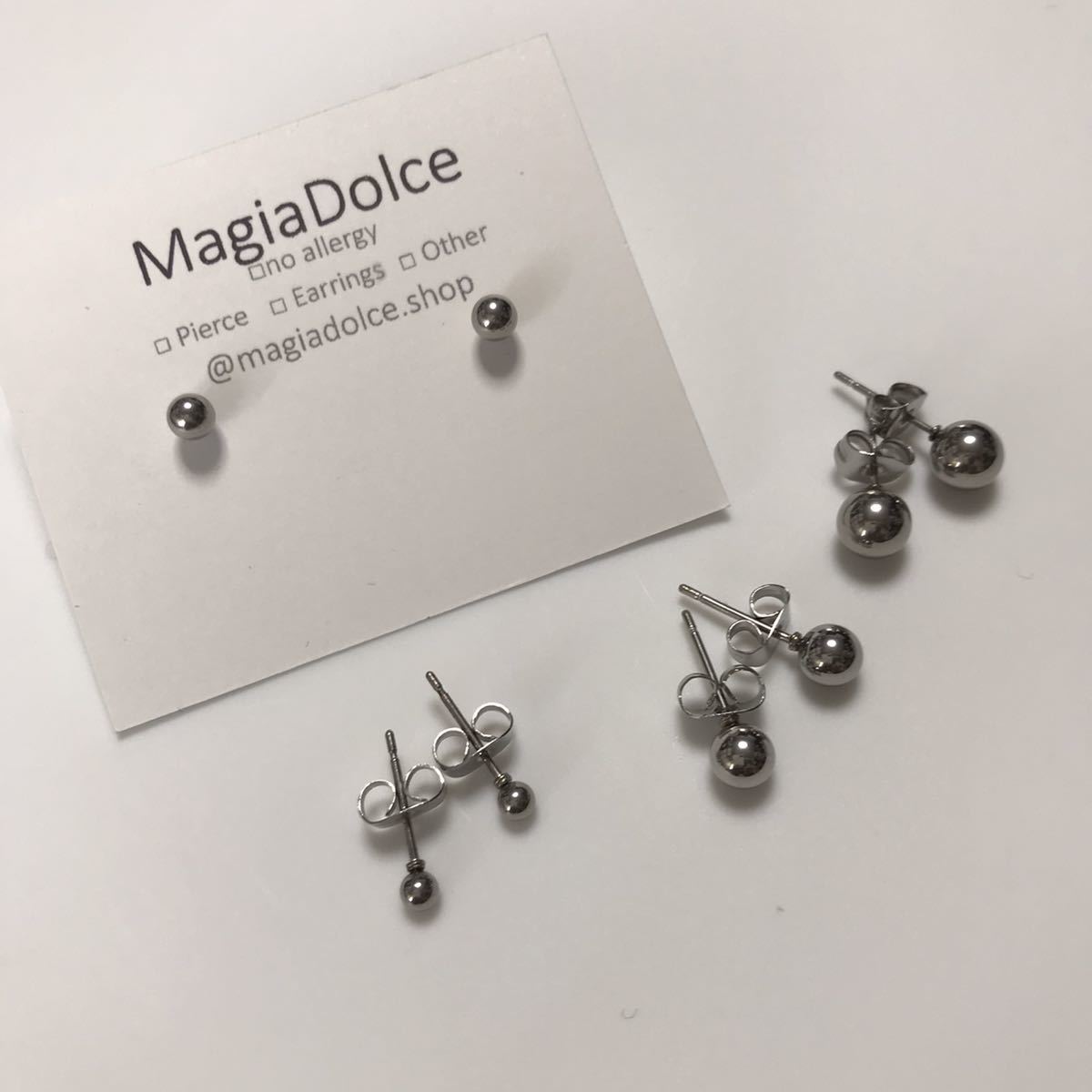 送料無料*MagiaDolce 5733●4mm ステンレスピアス シルバーピアス アレルギー対応ピアス シンプルピアス 定番 丸玉スタッドピアス ボール