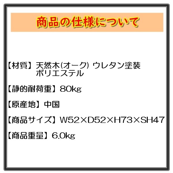 ![]() チェア CHA-76 ベージュ 商品の仕様について 【材質】天然木(オーク) ウレタン塗装 ポリエステル 【静的耐荷重】80kg 【原産地】中国 【商品サイズ】W52×D52×H73×SH47 【商品重量】6.0kg ◇◆発送について◆◇