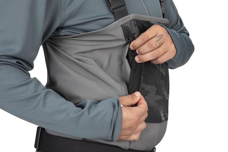 リーチスルー式ハンドウォーマー/ポケットの上には、ジッパーをスタッシュポケットも装備。