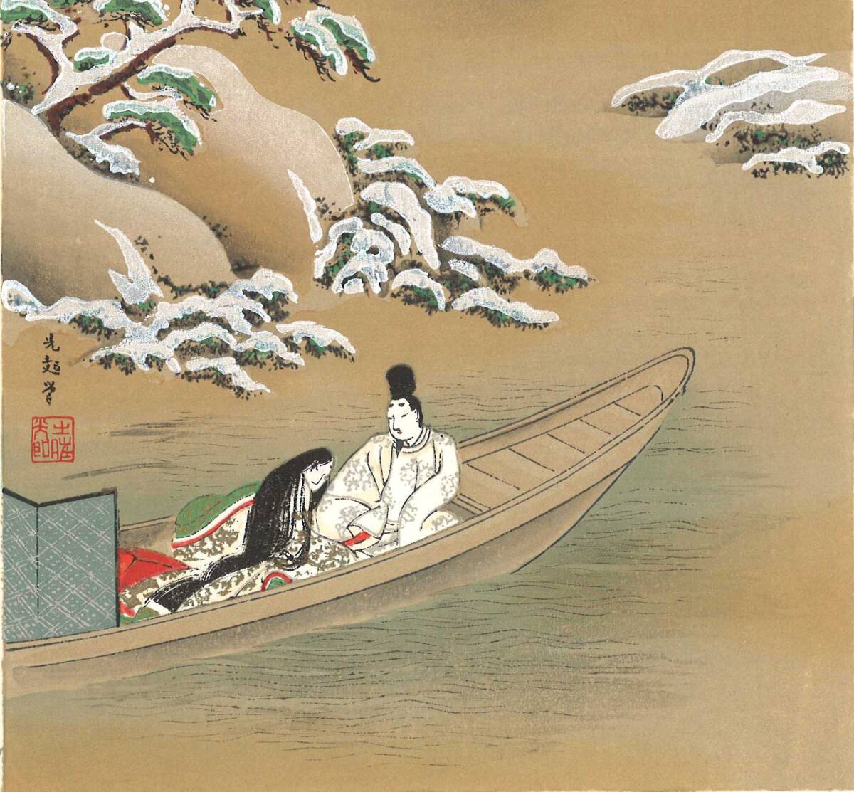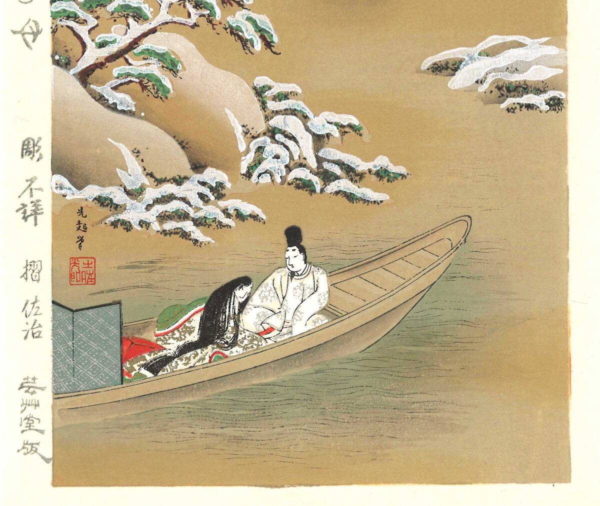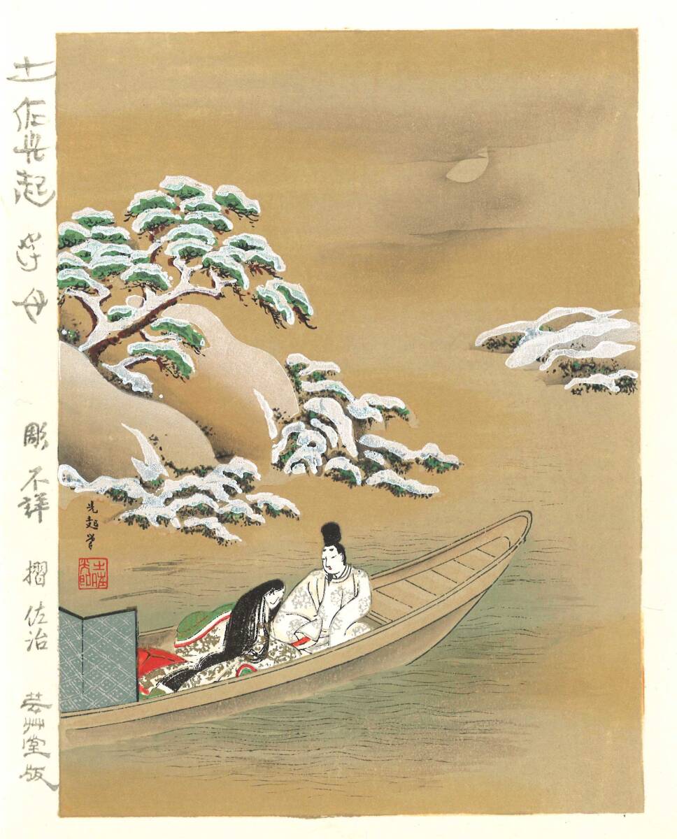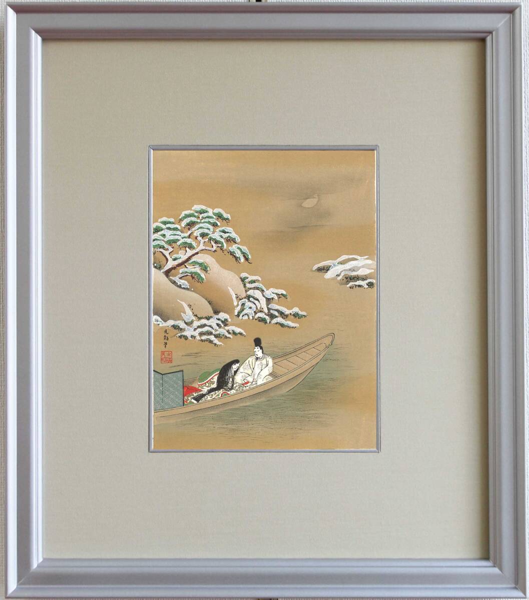 真作保証  額装 土佐光起  木版画   源氏物語 浮舟      初版 明治期     一流の摺師の技をご堪能下さい!   貴重作品!
