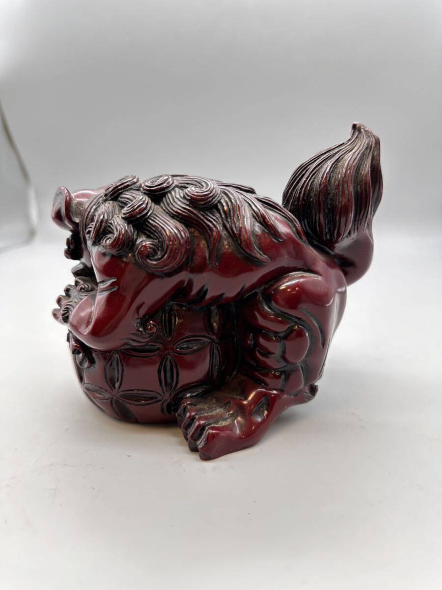 商品名 | 狛犬 玉乗り獅子 赤獅子 シーサー 寿山石? 置物 魔除け 縁起物 |