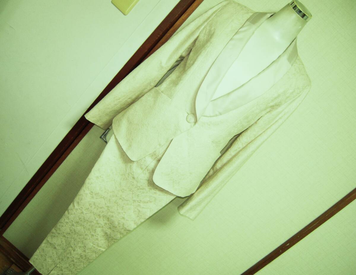 肩幅41、身幅47、袖丈57、着丈55、ウエスト76、股下58(8cmスリット・2cm出し可)