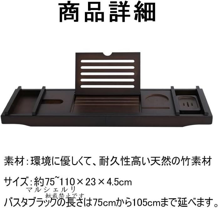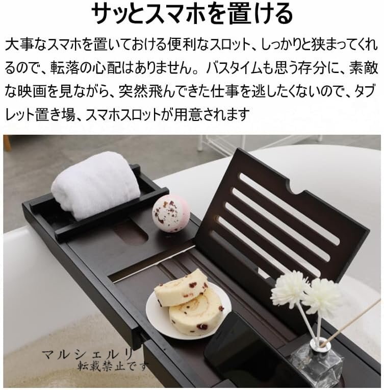 【気楽にお風呂に楽しめる】調節可能なバスキャディは、ほぼすべてのバスタブに適できます。 お風呂を満喫しながら、自由に飲み物を手に入れたり、お気に入りのビデオを見たり、本を読んだりする環境を整えることはできます。本、タブレット、スマートフォン、スナックトレイをタブに落ちることを心配せずお風呂を楽しめます。