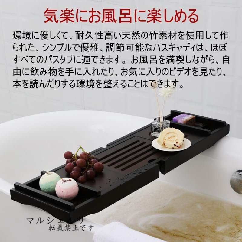 バスタブラック 竹製 伸縮式 調整可能 バスタブトレー バステーブル お風呂テーブル お風呂用品 バスグッズ 小物置き多機能