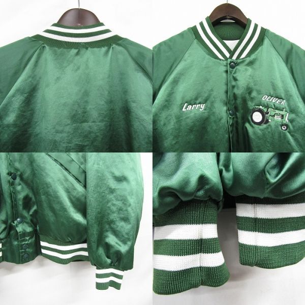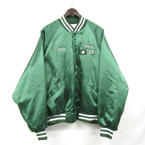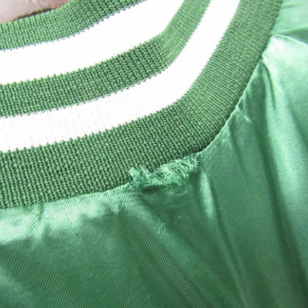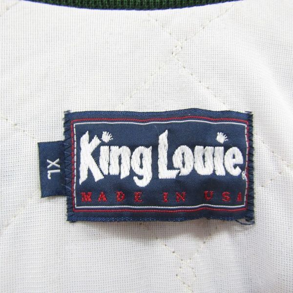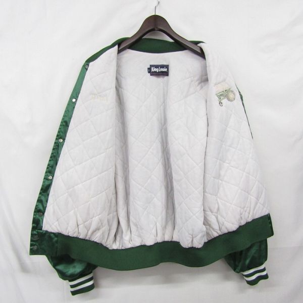 ★USA製★ サイズ XL KingLouie スタジアム ジャンパー ナイロン ジャケット 中綿 グリーン 裏地キルティング 刺繍 古着 ビンテージ 4M0908