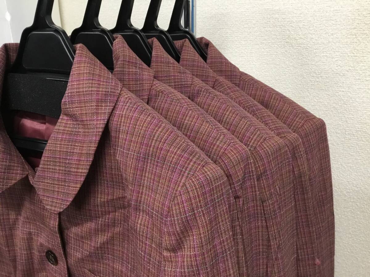 0023-507G 新品【HINUCK】 オフィスウェア ジャケット 11号 5枚(同一商品)/赤系チェック柄/ハイナック/ブレザー/事務服/OL/受付/制服/秘書
