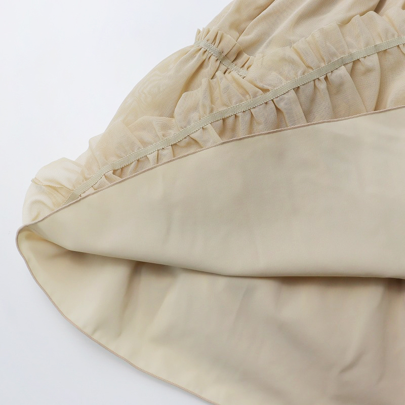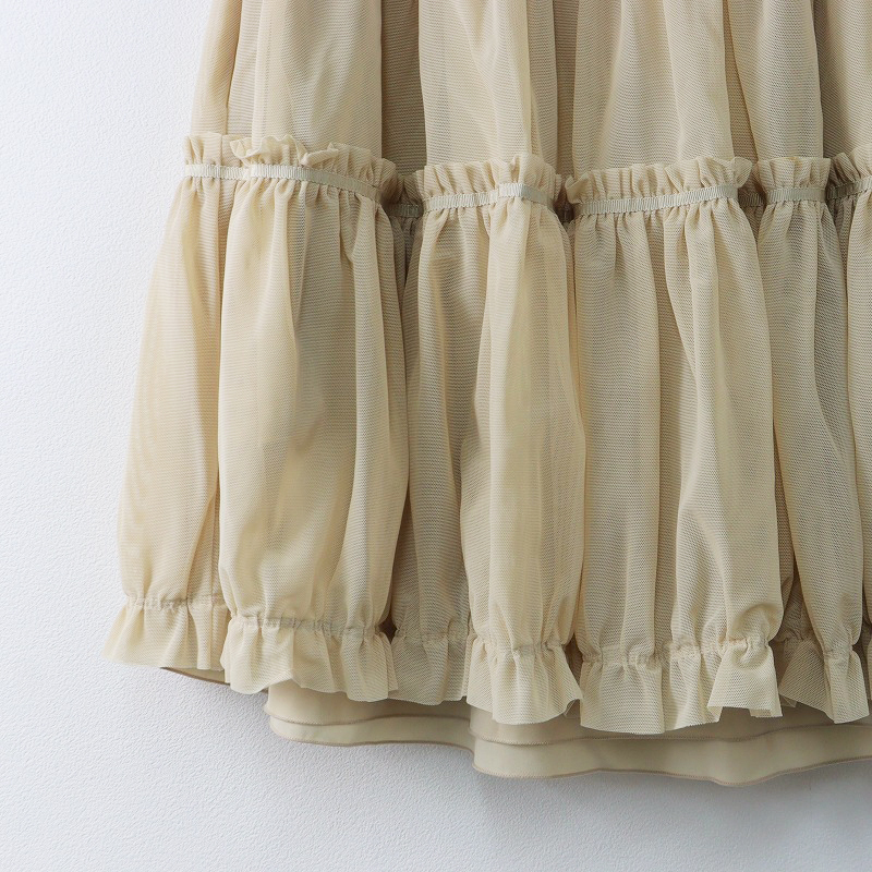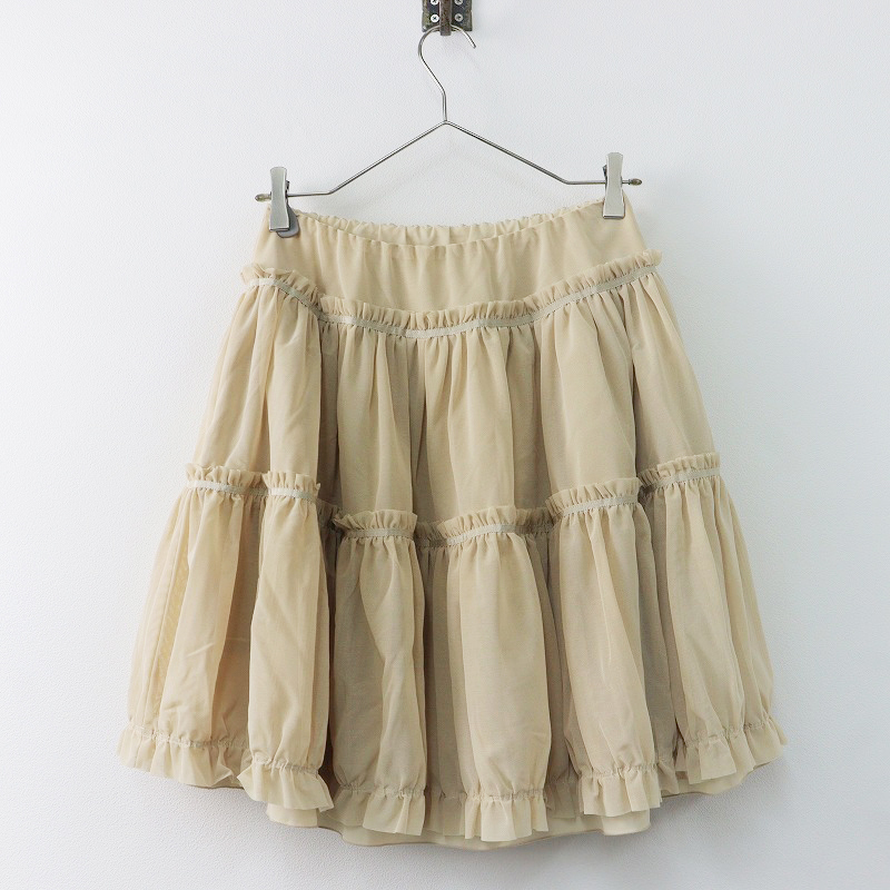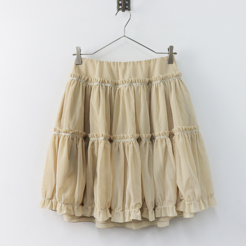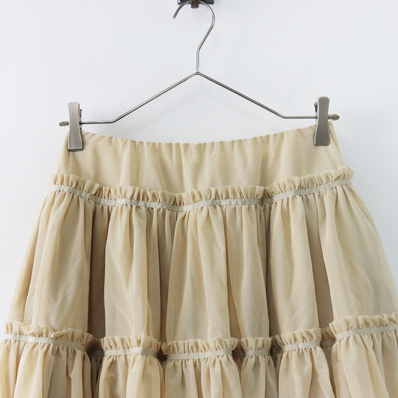 美品 フォクシー ニューヨーク FOXEY NEW YORK チュールフリルティアードスカート 40/ベージュ 段々 フレア【2400013864404】