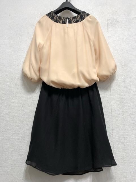 新品☆11号Mベージュ×黒系♪ウエスト切替ワンピースドレス♪☆a166