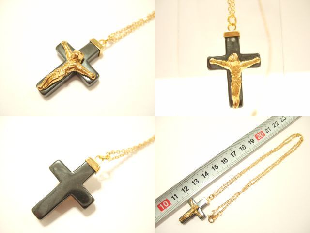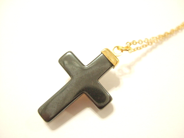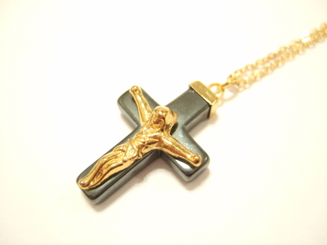 商品名 | 横浜最新 天然石ヘマタイトキリストゴールド十字架♪魅惑のクロスペンダント チェーン45cm付き メンズレディース 守護魔除け |