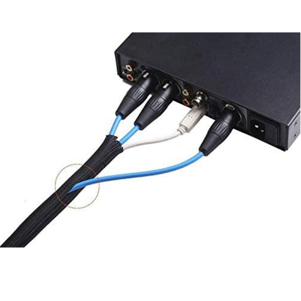 かさばるケーブルをまとめて、この編組ケーブルスリーブを巻き付け、簡単にケーブルをひとまとめにできるケーブル収納カバーです。