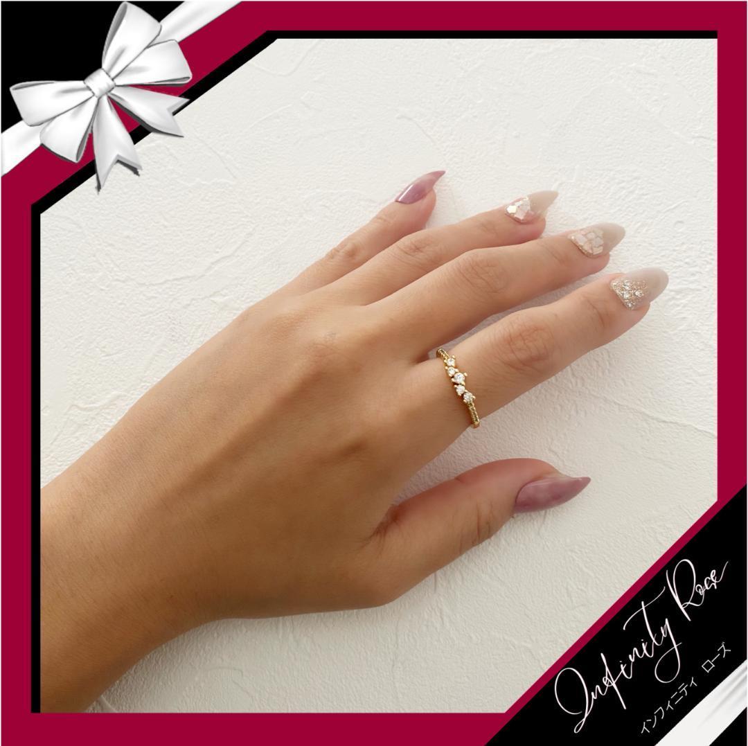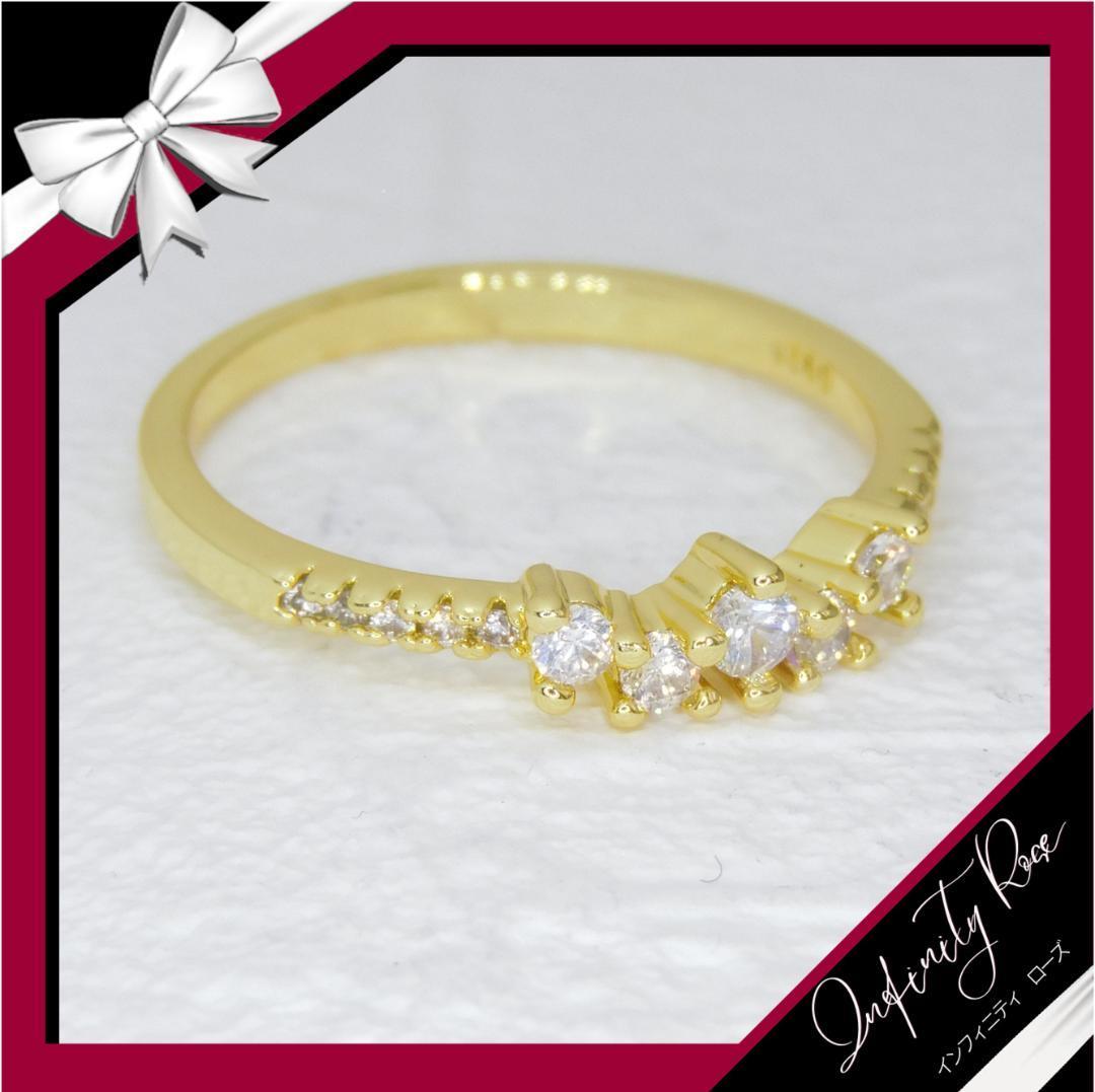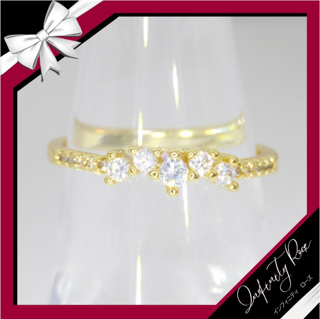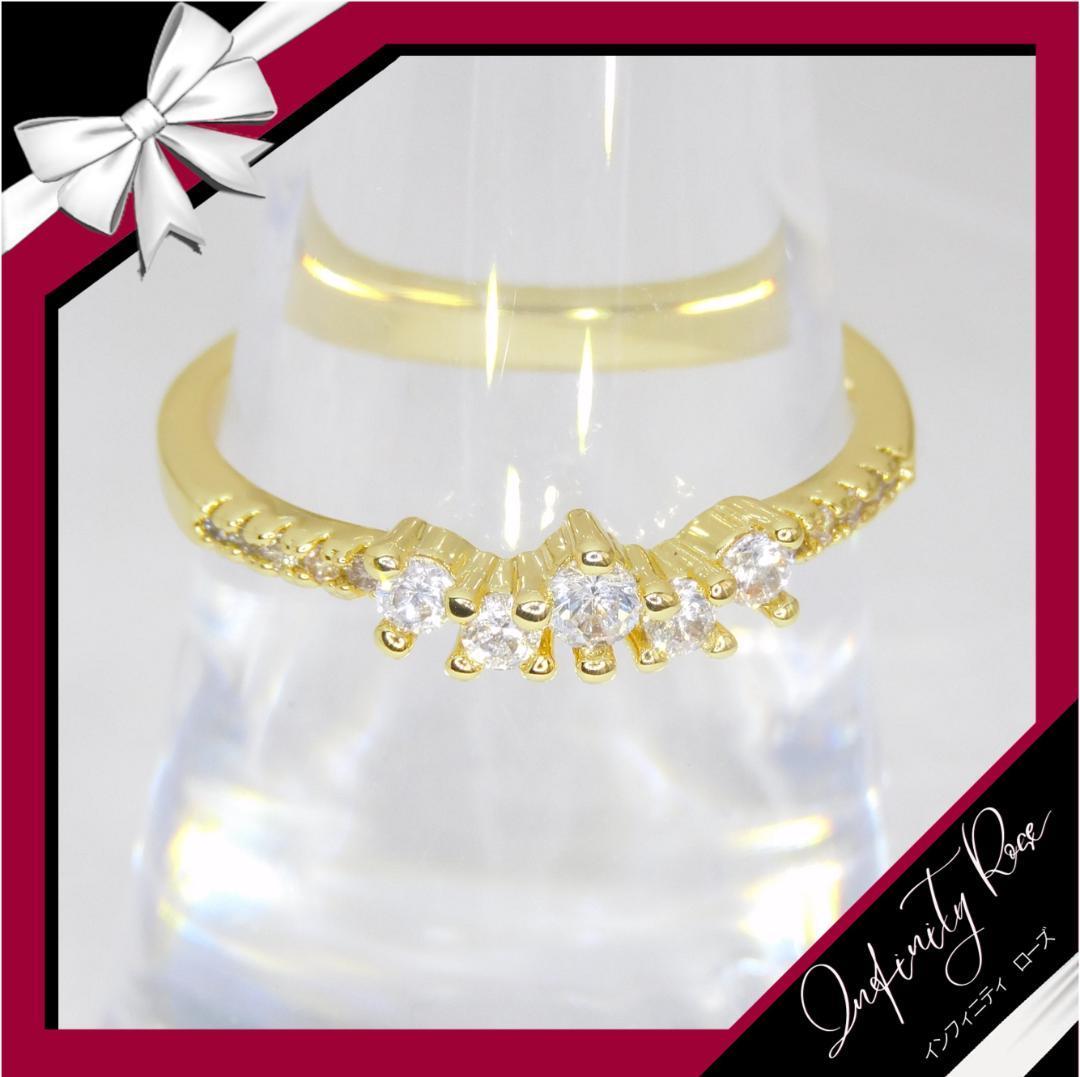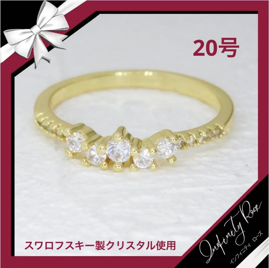 (R048G)20号 ゴールドシャンデリア煌めく細リング 高価爪留指輪 スワロフスキー製クリスタル使用