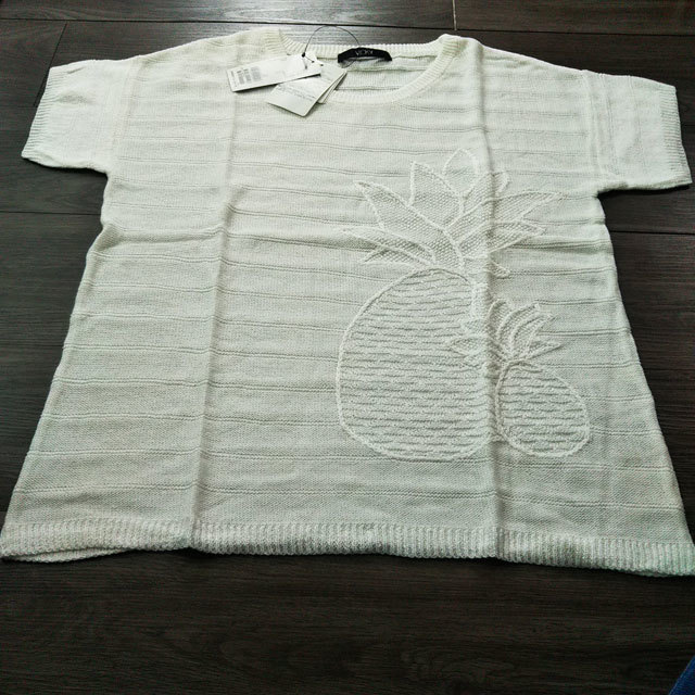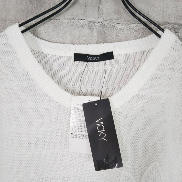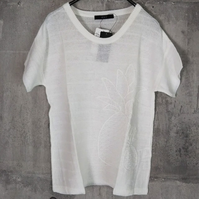 未使用 VICKY サイズ2 プルオーバー 半袖 ドロップショルダー パイナップル柄 ホワイト系 ビッキー レディース トップス 参考価格14,000円