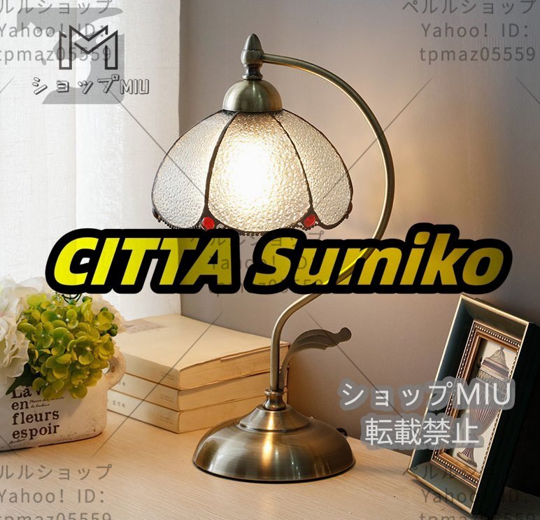 未使用 北欧風 電気スタンド 寝室 ベッドサイド照明 アンティーク ガラス製