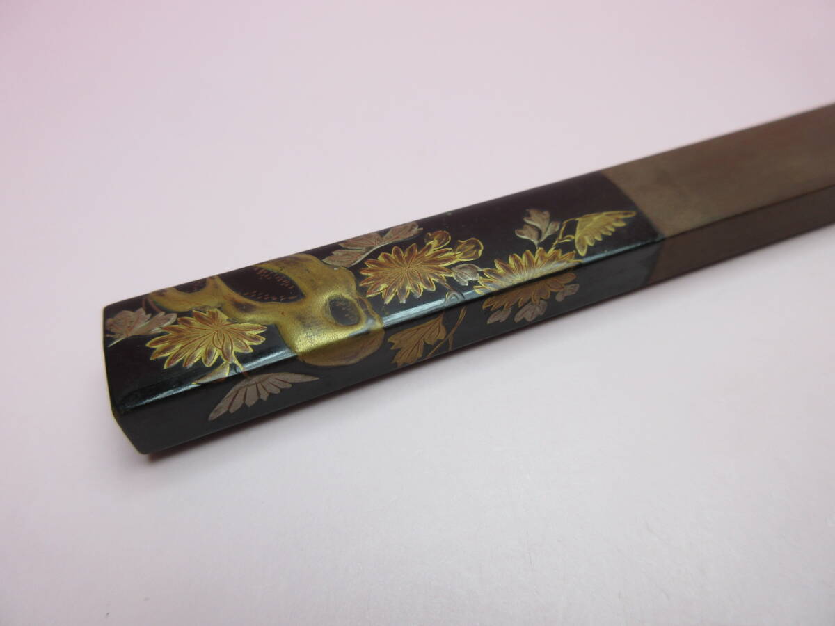 DK 19 ♪♪ 時代 金蒔絵 菊模様 笄 ♪♪ 和装小物 和風 着物 時代物 アンティーク かんざし こうがい