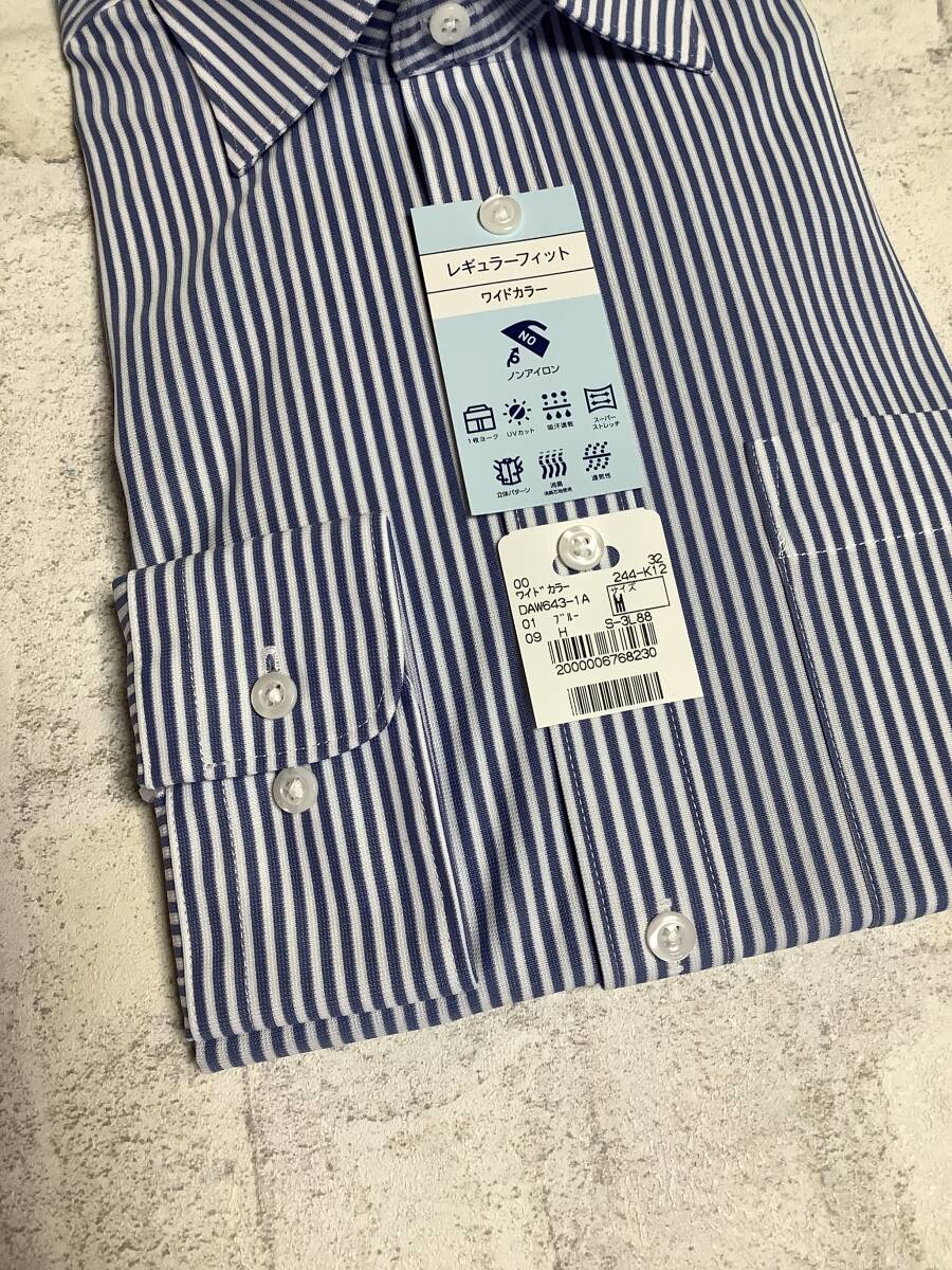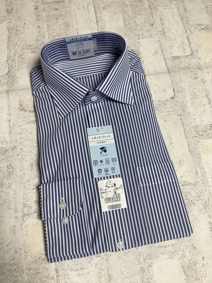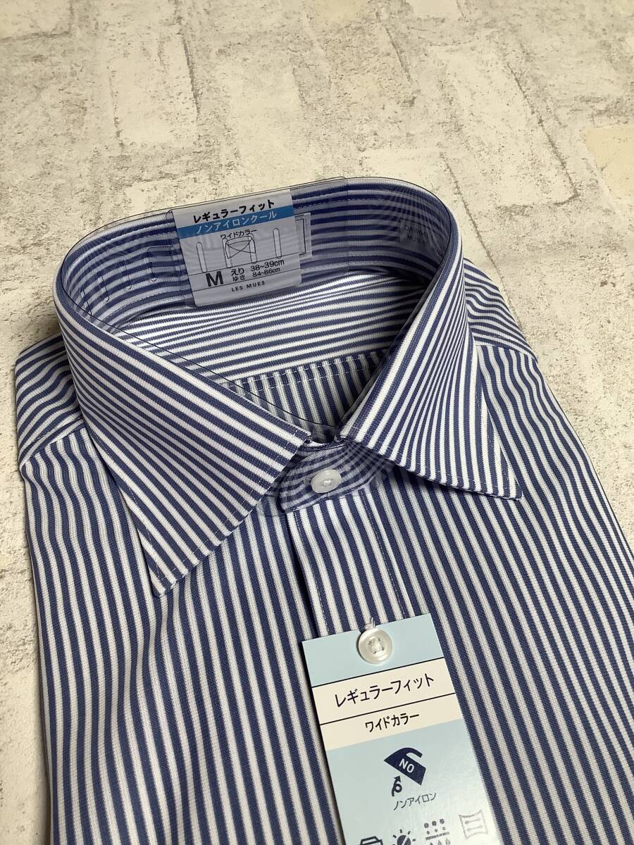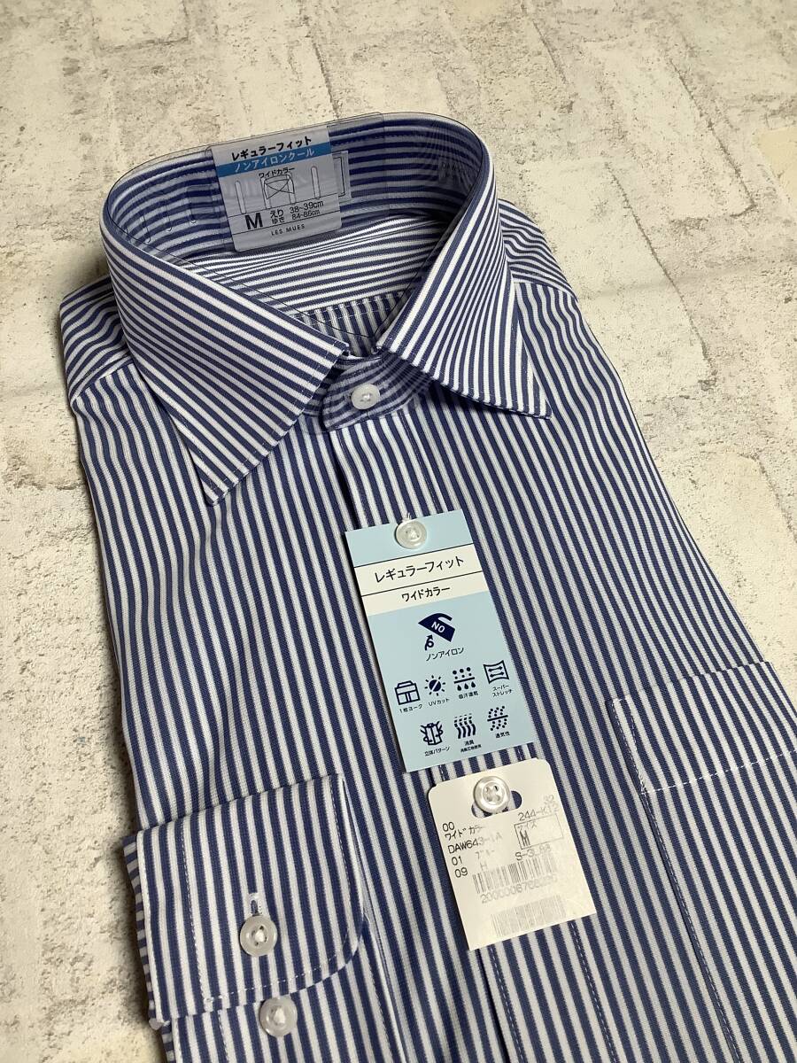 新品未使用★39-86 長袖Mサイズ ★ブルーストライプ ワイドカッターシャツ 定価4,990円 スーパーストレッチドレスシャツ