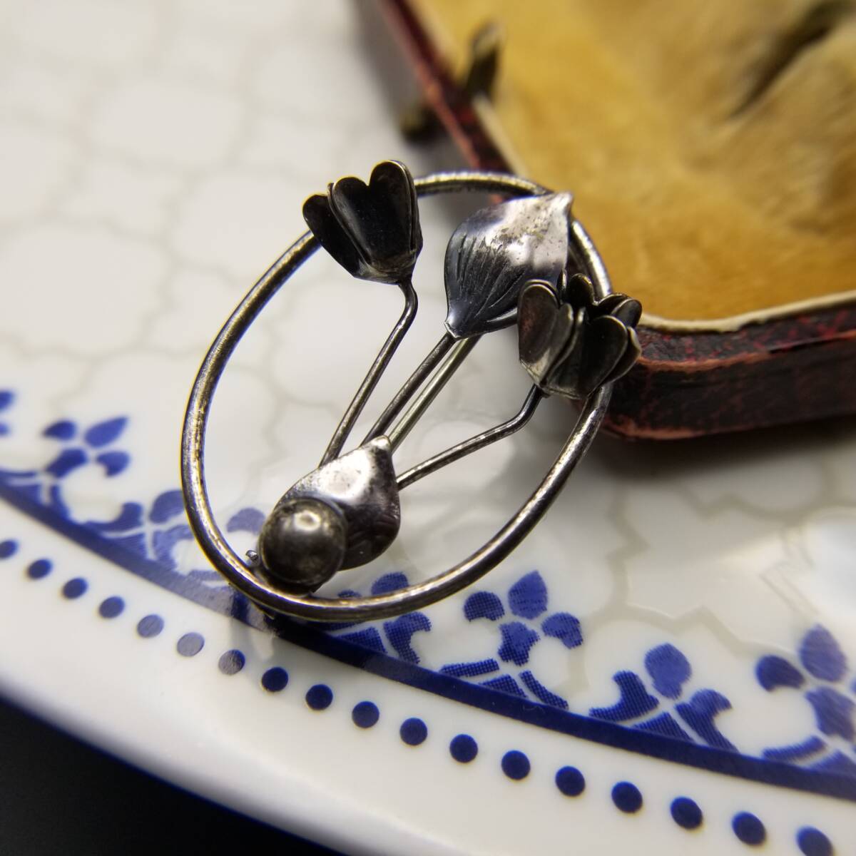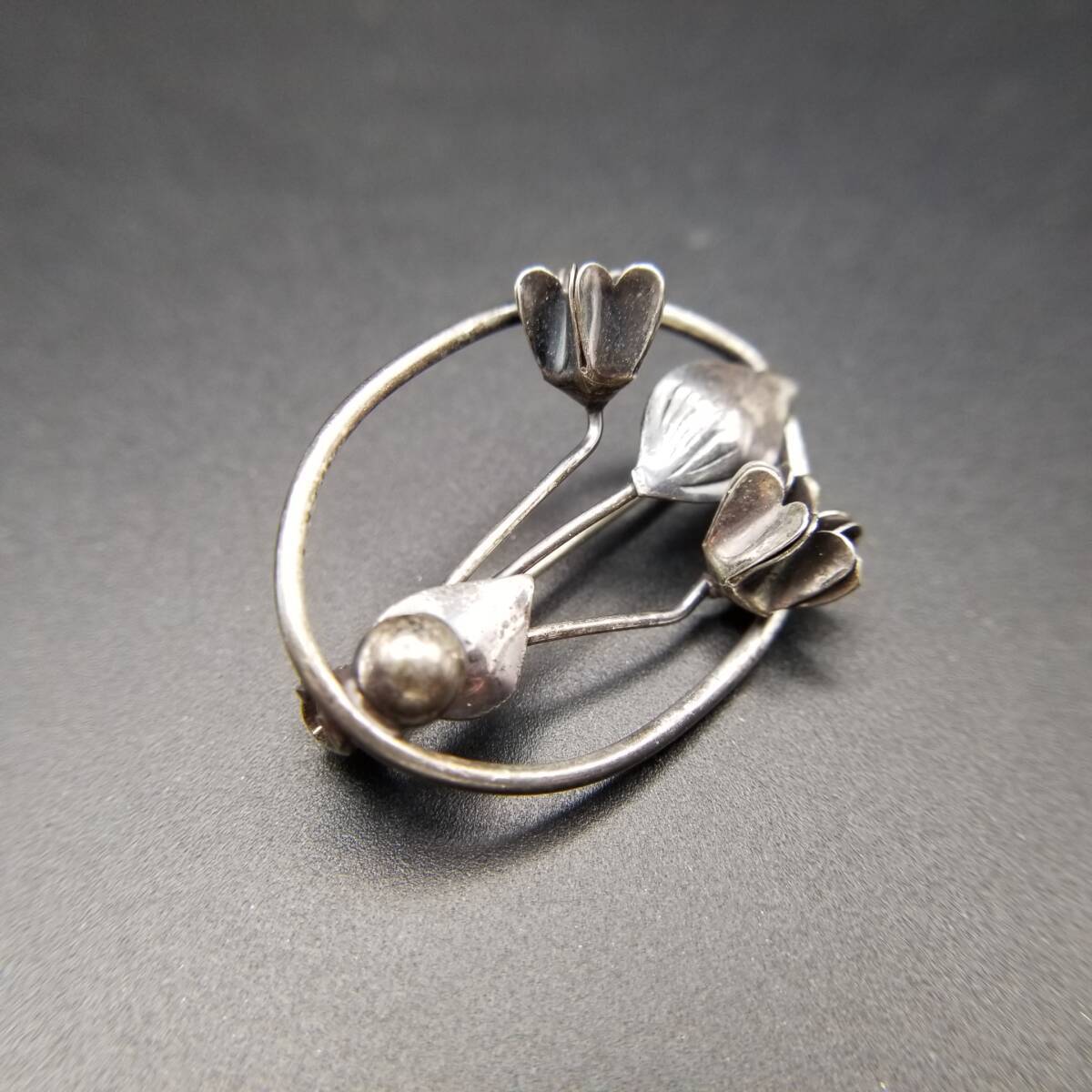 チューリップ フラワー モチーフ ラウンド フレーム スターリング キュート ヴィンテージ シルバー ブローチ ジュエリー 輸入 Y16-I