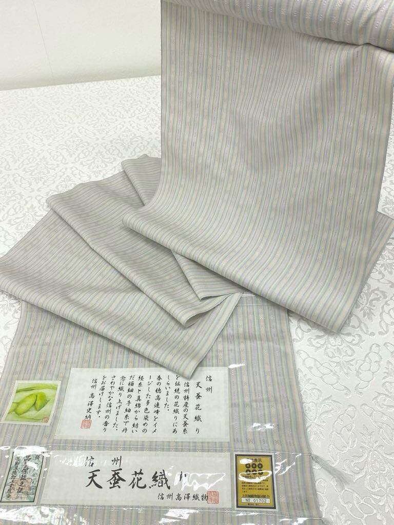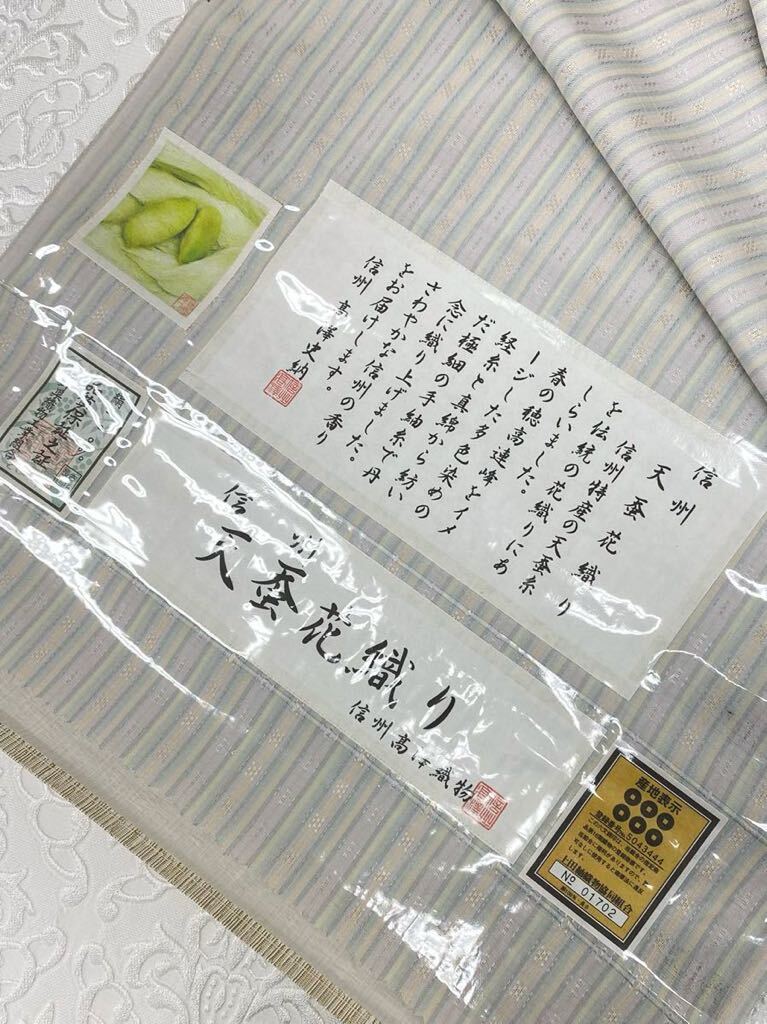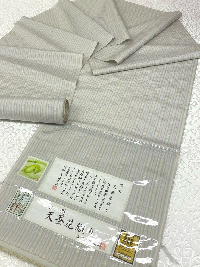 天蚕花織り 信州髙澤織物 六文銭印 紬 反物 天蚕糸 手紬 正絹