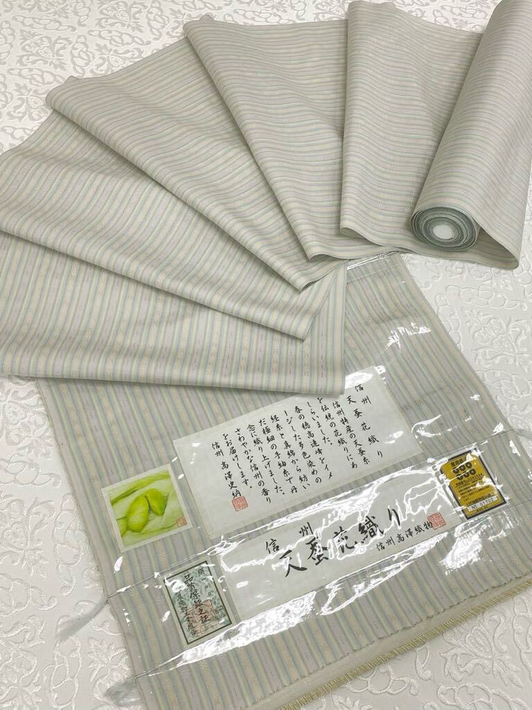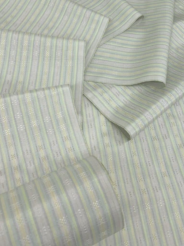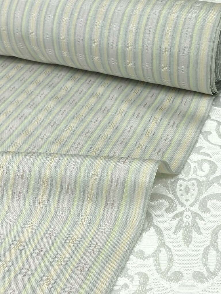上品な艶感があり、花織で縦縞が浮き出るように織られ、奥行き感があります。