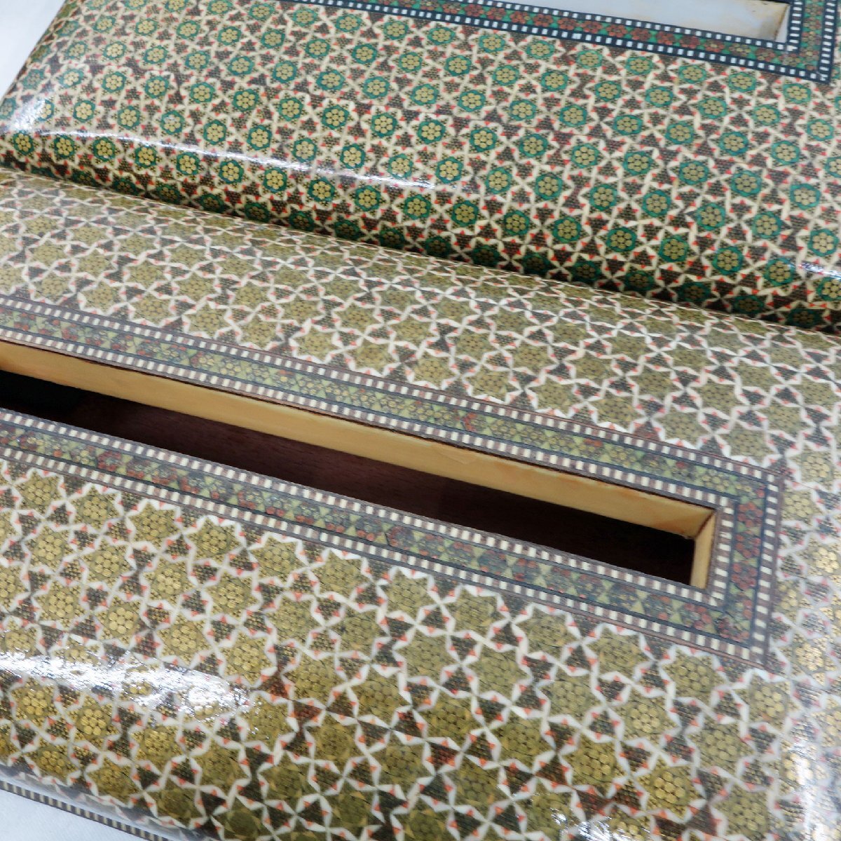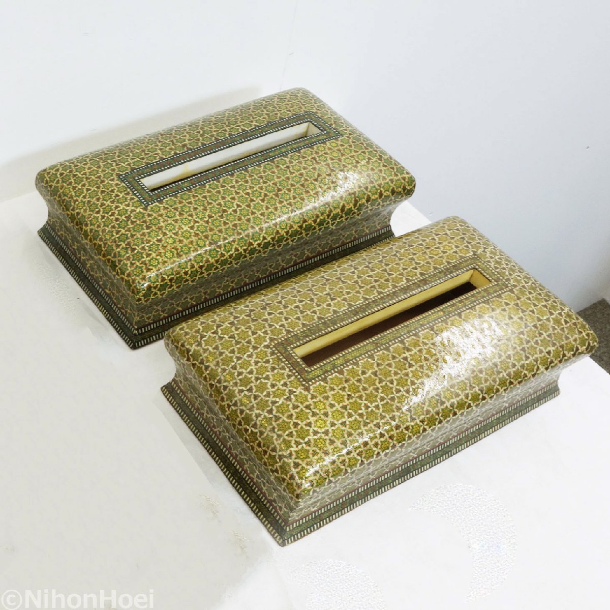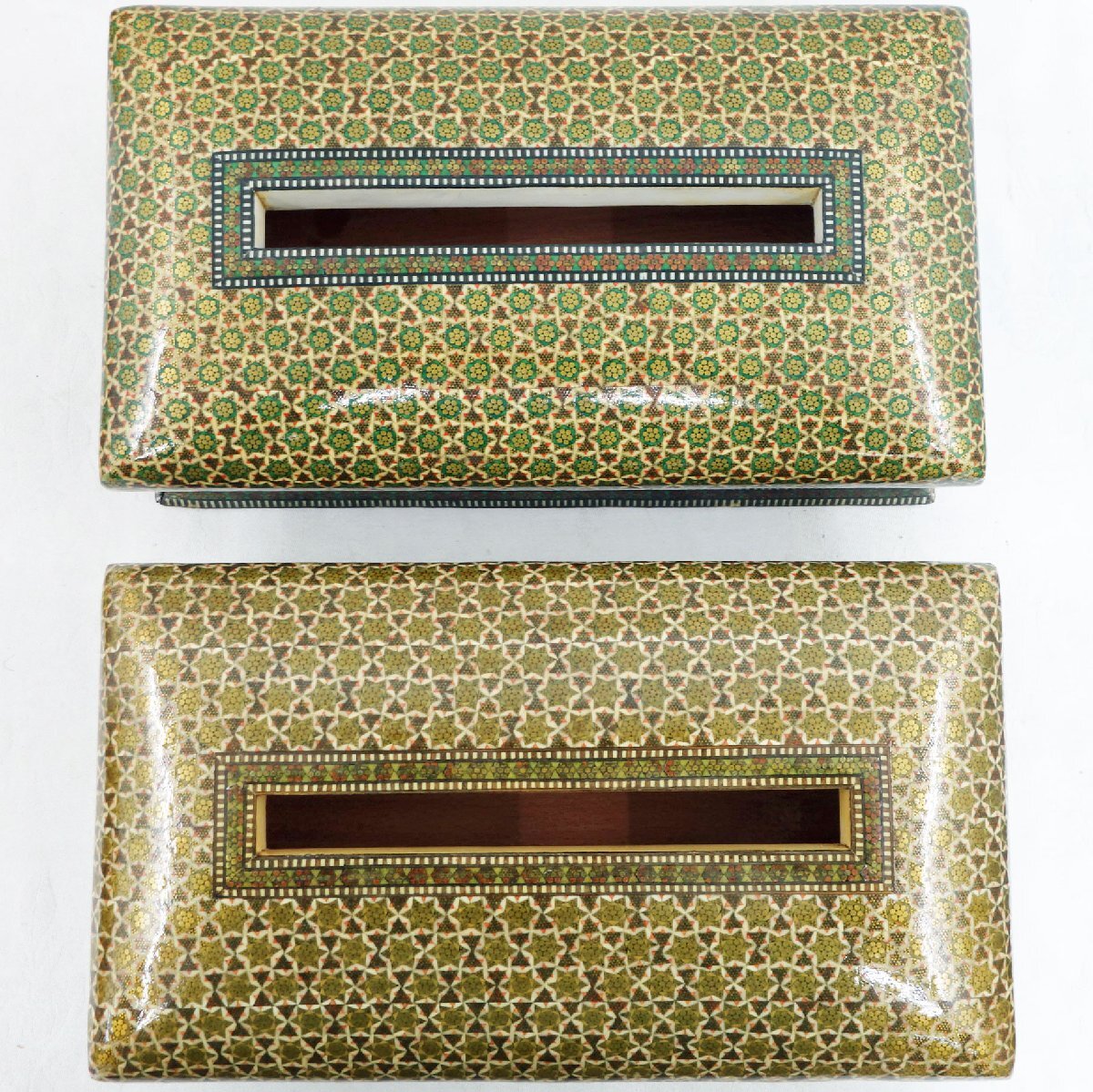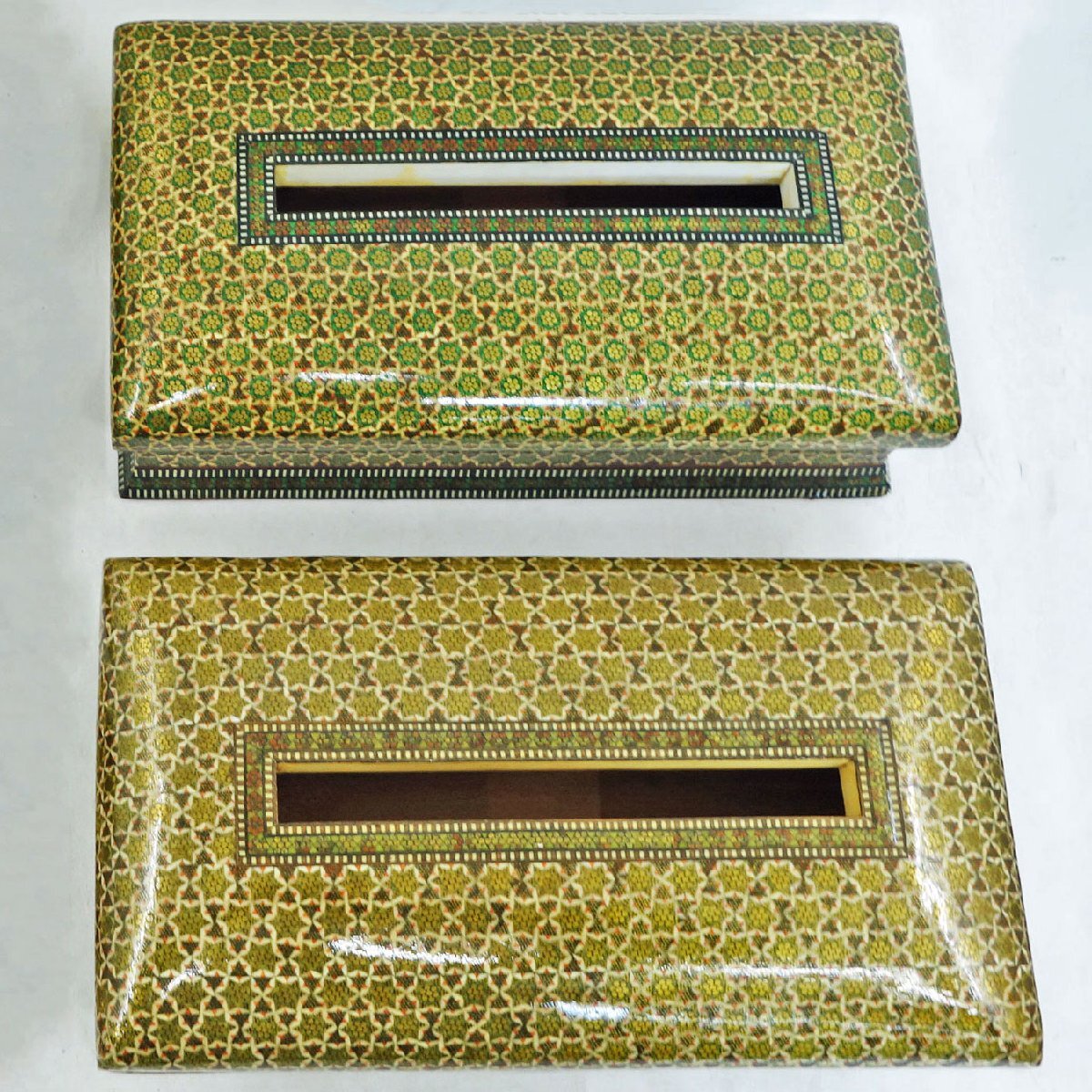 送料無料/未使用 ◆ ペルシャ 伝統工芸 ハータムカーリー/象嵌細工 ◆ ティッシュボックス 2個 ◆ イラン 中東 豪華 寄木細工