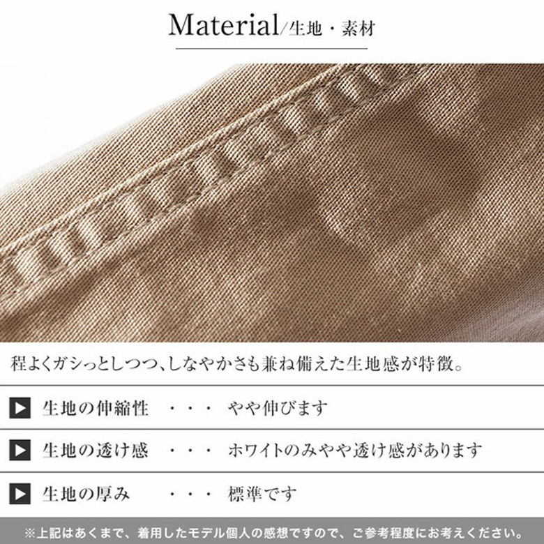 ツイル素材のしっかりとした生地で履き心地もばっちり。
