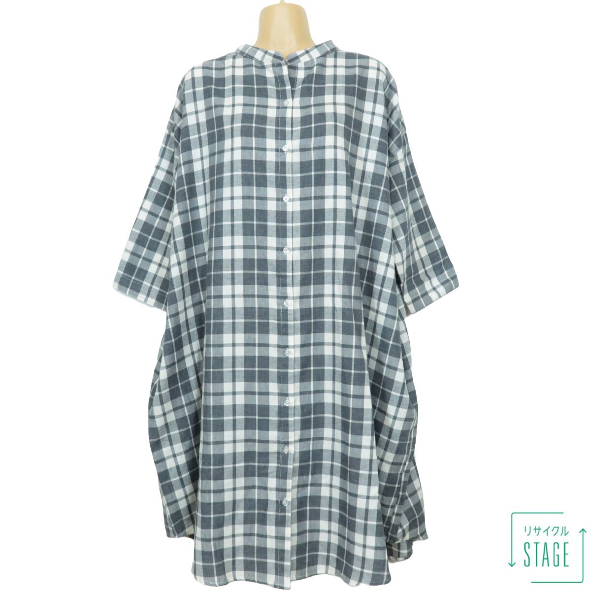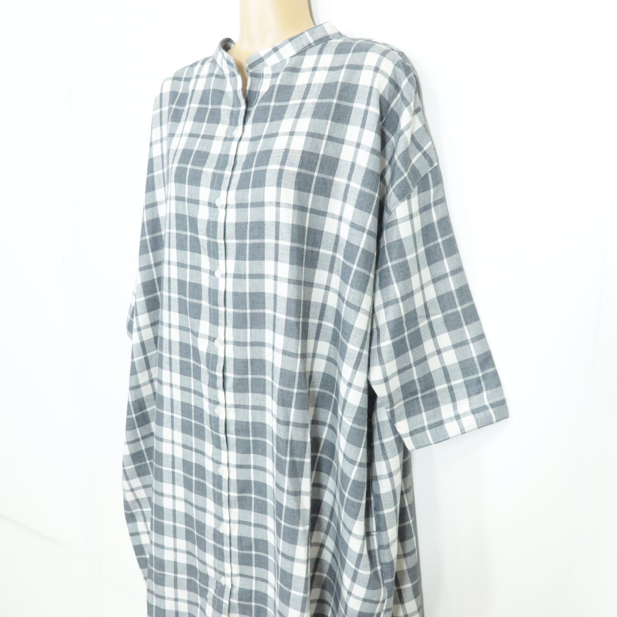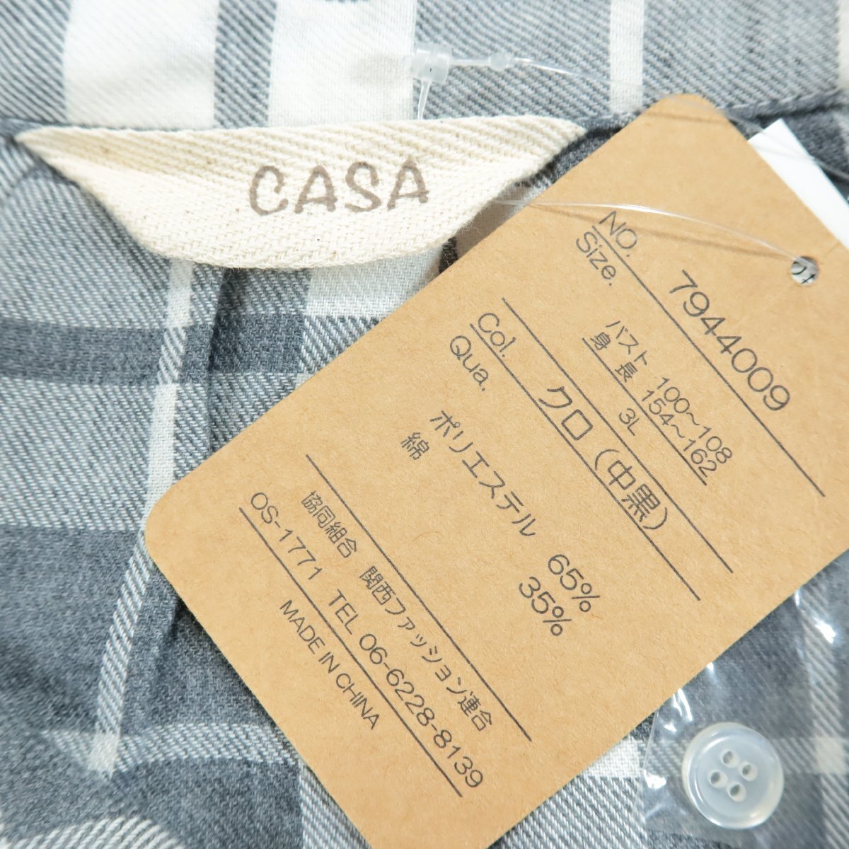 【新品タグ付】CASA★シャツワンピース 五分袖 大きいサイズ3L チェック柄 コットン混 グレー×白系 z7392