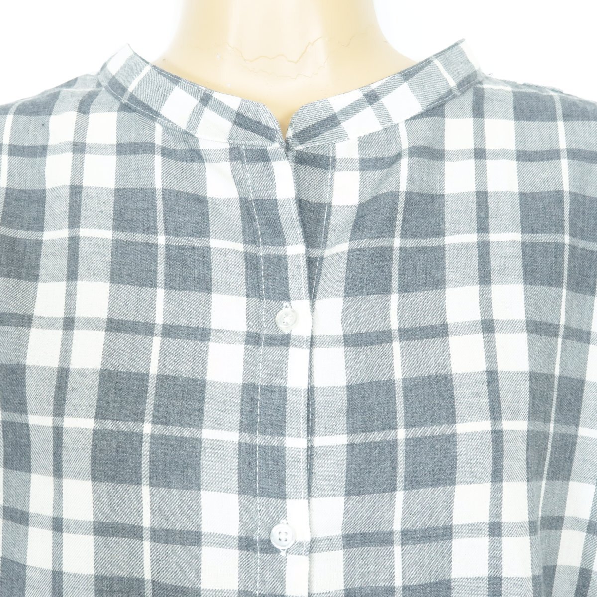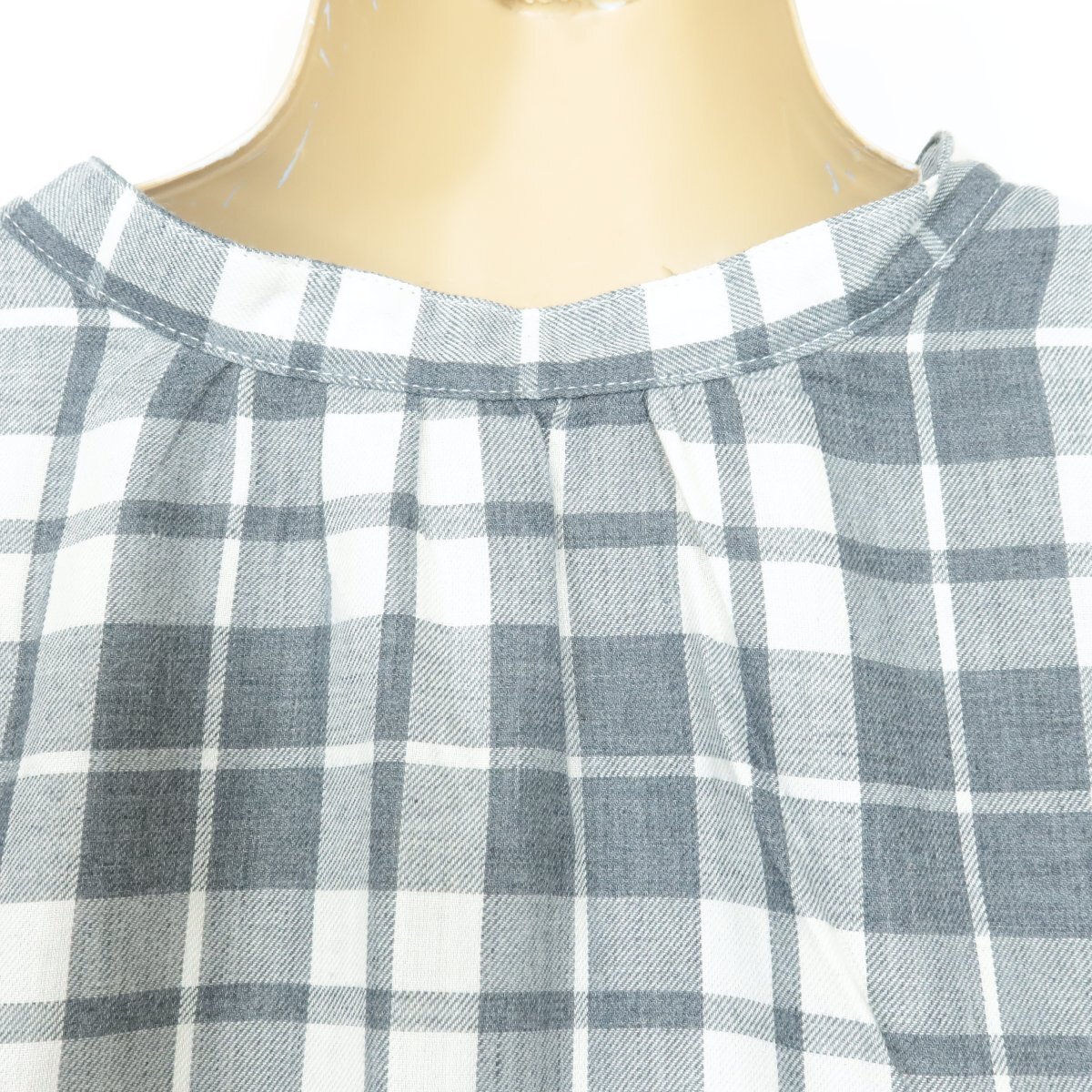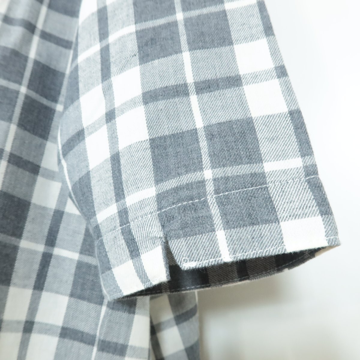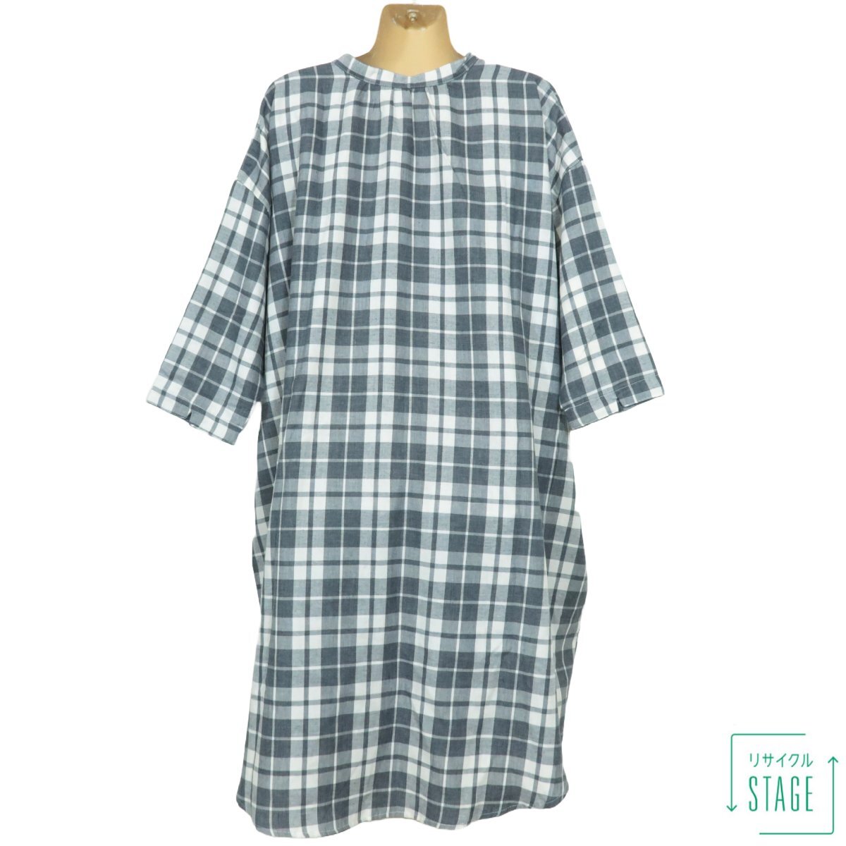 【新品タグ付】CASA★シャツワンピース 五分袖 大きいサイズ3L チェック柄 コットン混 グレー×白系 z7392