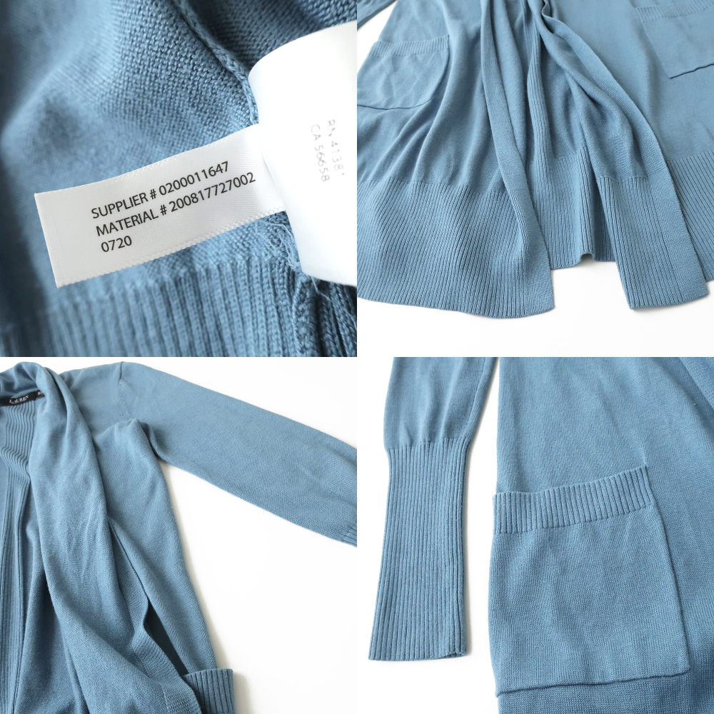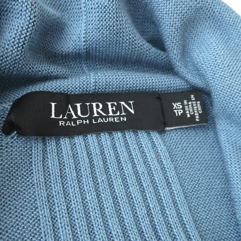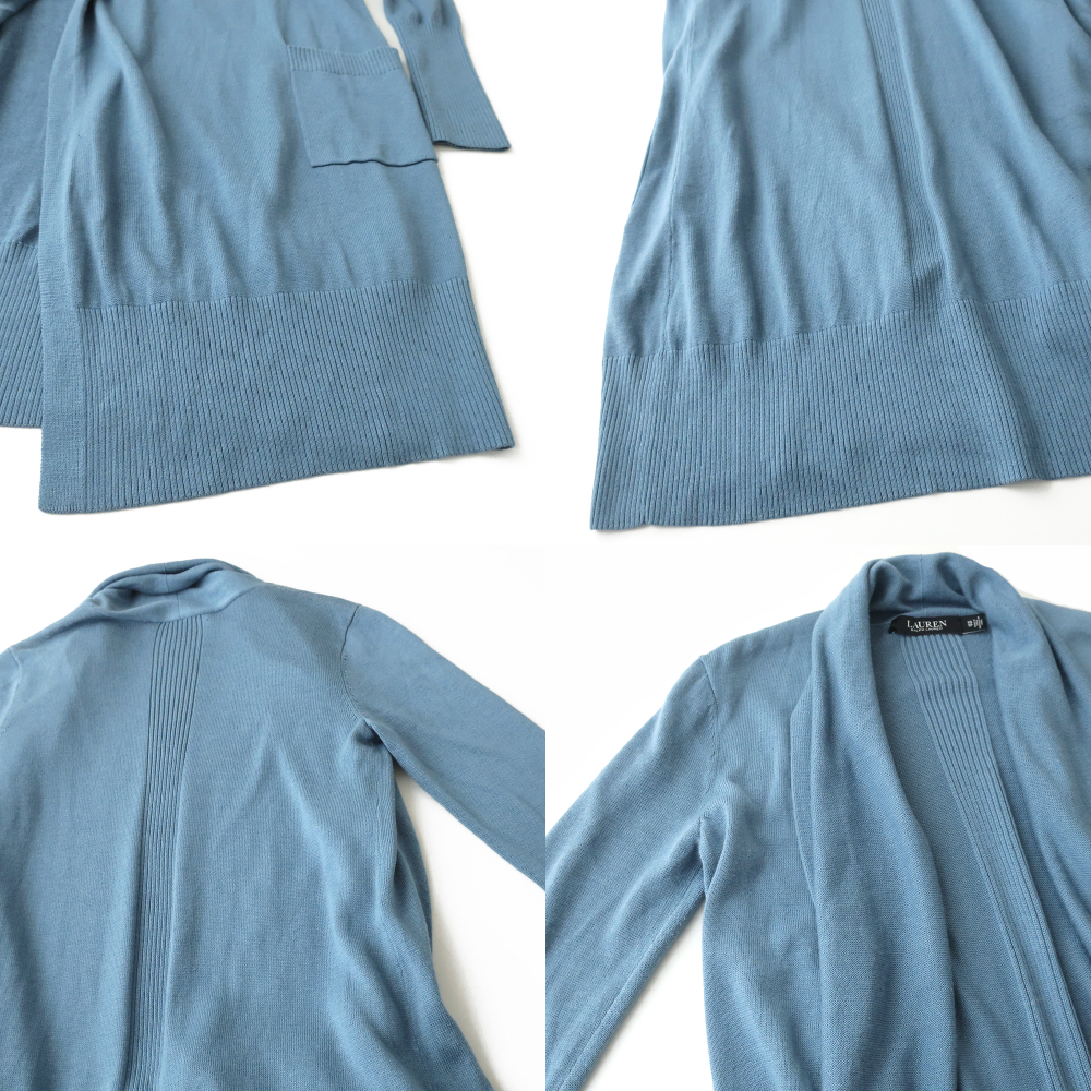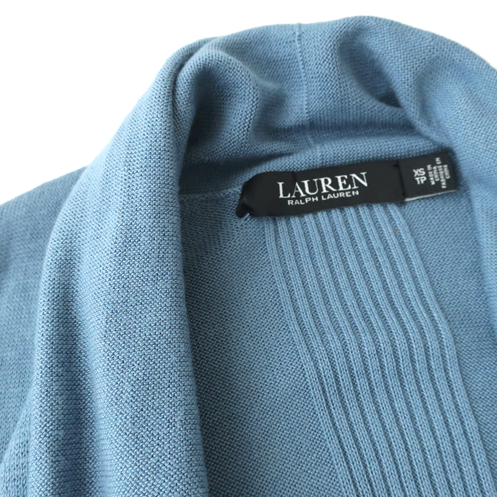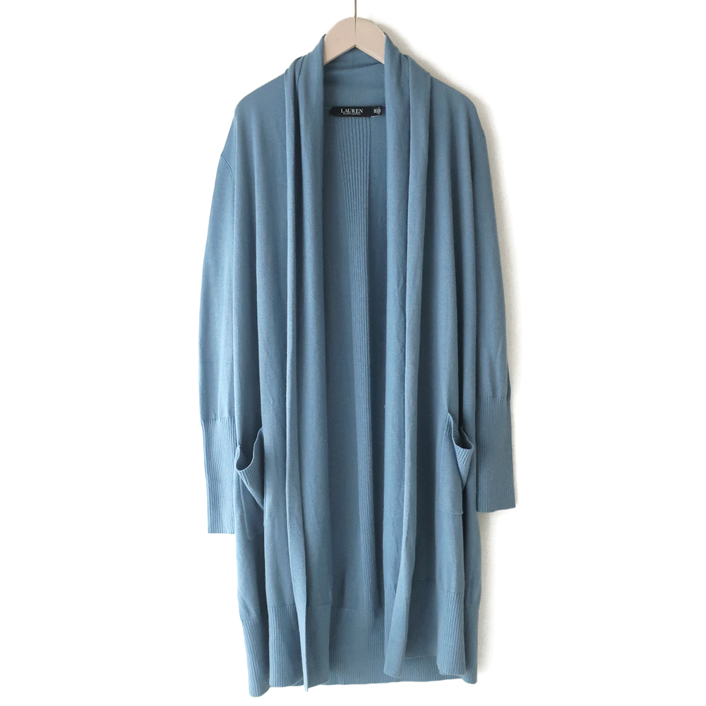 上質 黒タグ LAUREN Ralph Lauren シルク混レーヨンニット ロングカーディガン オープンフロント 春秋◎ブルー(M) ラルフローレン