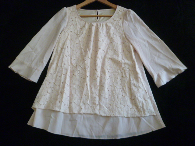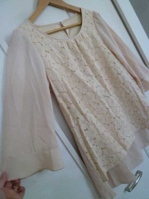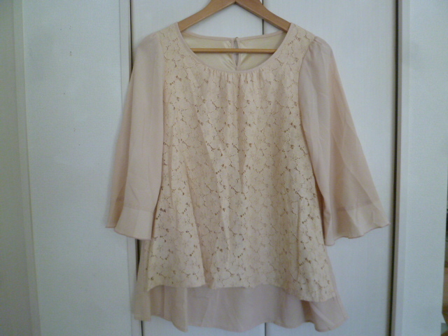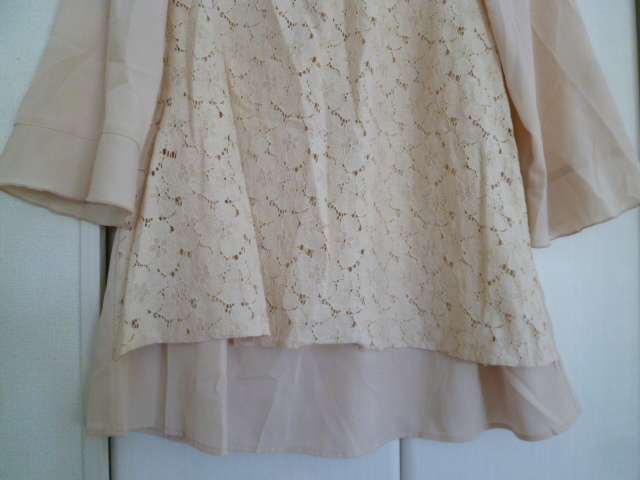 provador◇ペールオレンジ前身総レースデザインフェイクツイン風ブラウスカットソーL◇フォーマル結婚式長袖◇a71