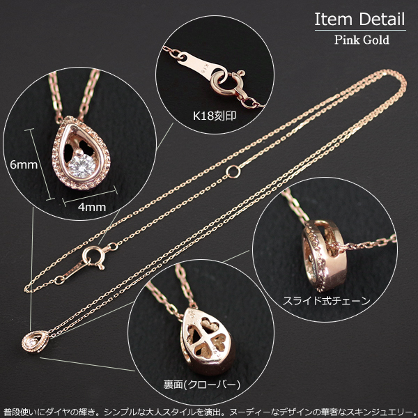 18金 ネックレス レディース ドロップ 涙型 K18 ダイヤモンド ペンダント ジュエリー ピンクゴールド 82178336 新品