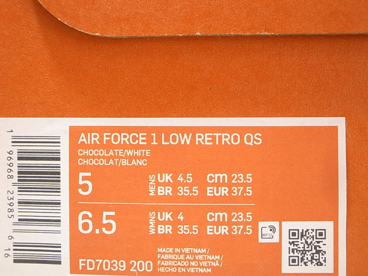 【送料無料 即決】NIKE AIR FORCE 1 LOW RETRO QS COLOR OF THE MONTH CHOCOLATE 23.5cm US5新品 チョコレート 天然皮革 FD7039-200 40周年