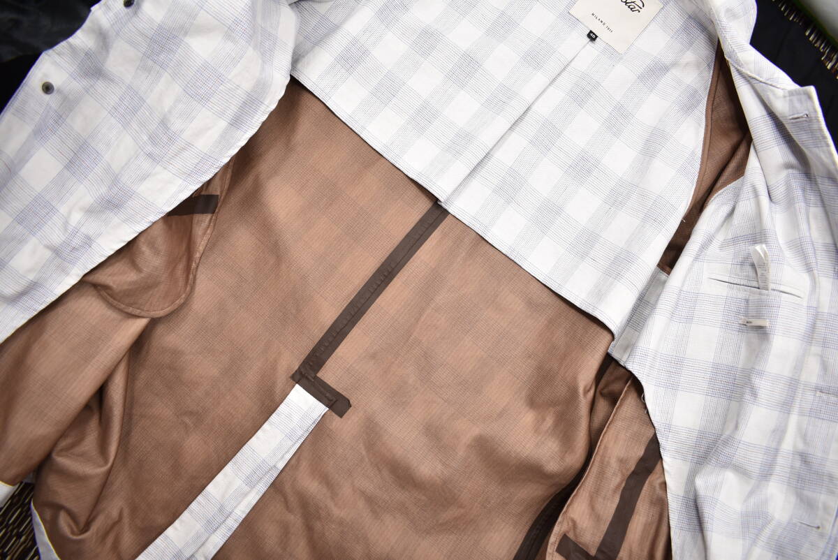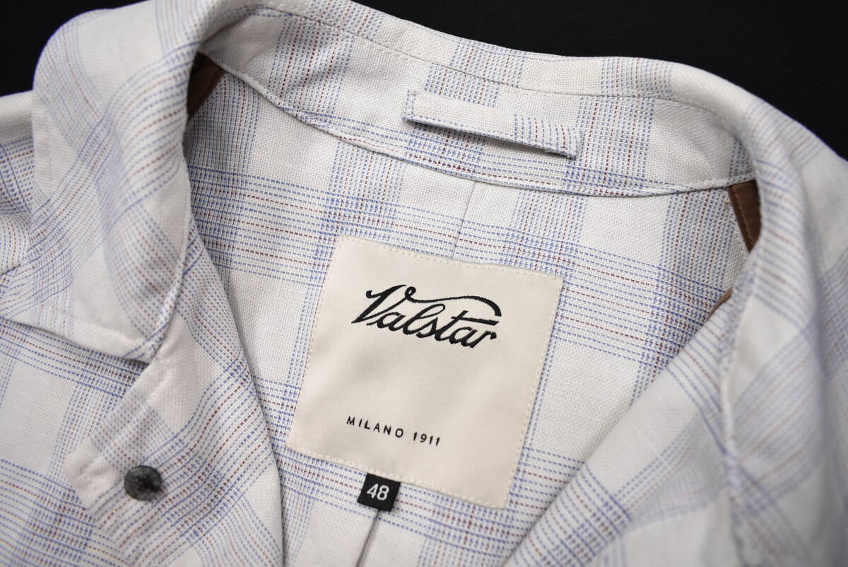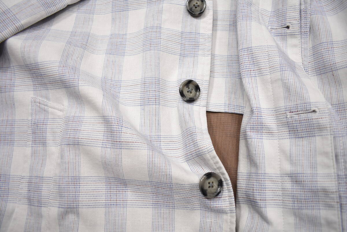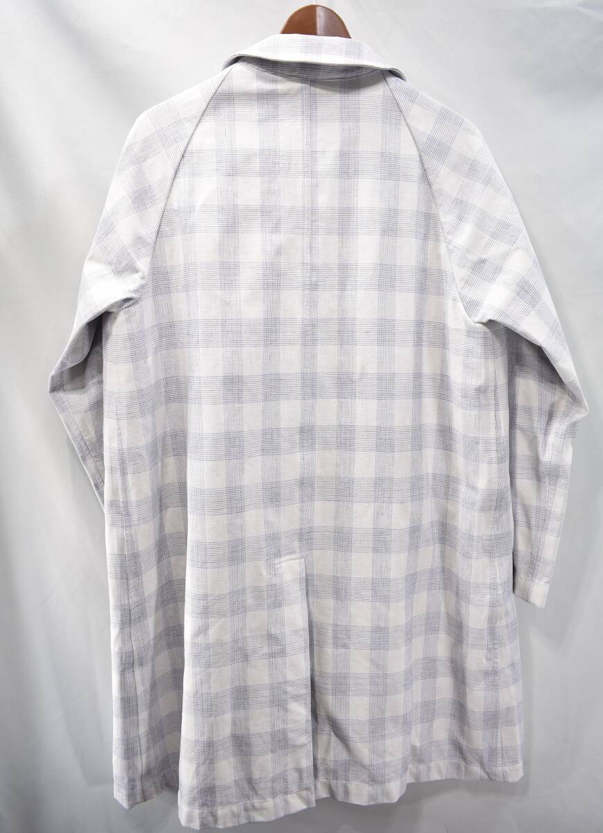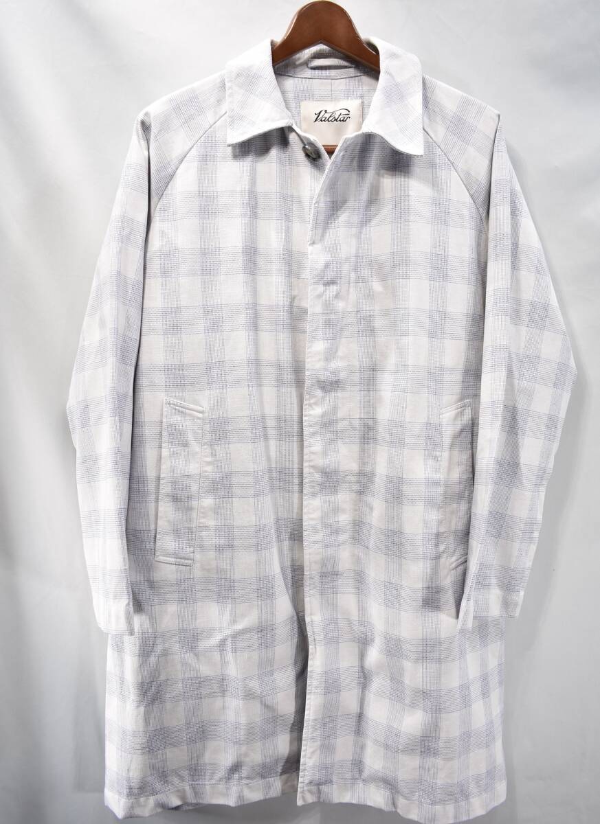 【VALSTAR】イタリア製チェック柄リネンコットンコート48白麻ステンカラー