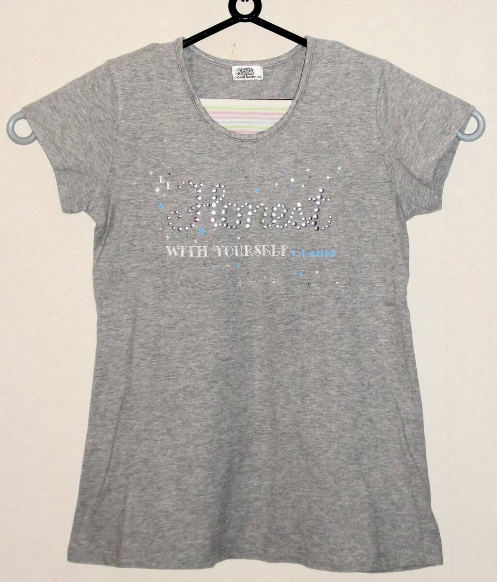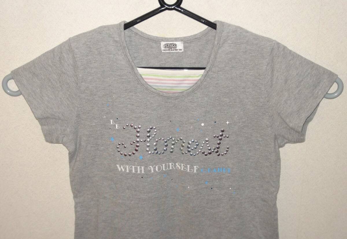 (キッズ・女の子・夏物・トップス)半袖Tシャツ(Honest)CROWN BANBY 160 グレー 身長155~ 胸囲76~84㎝ 胴囲59~65㎝ 綿100%