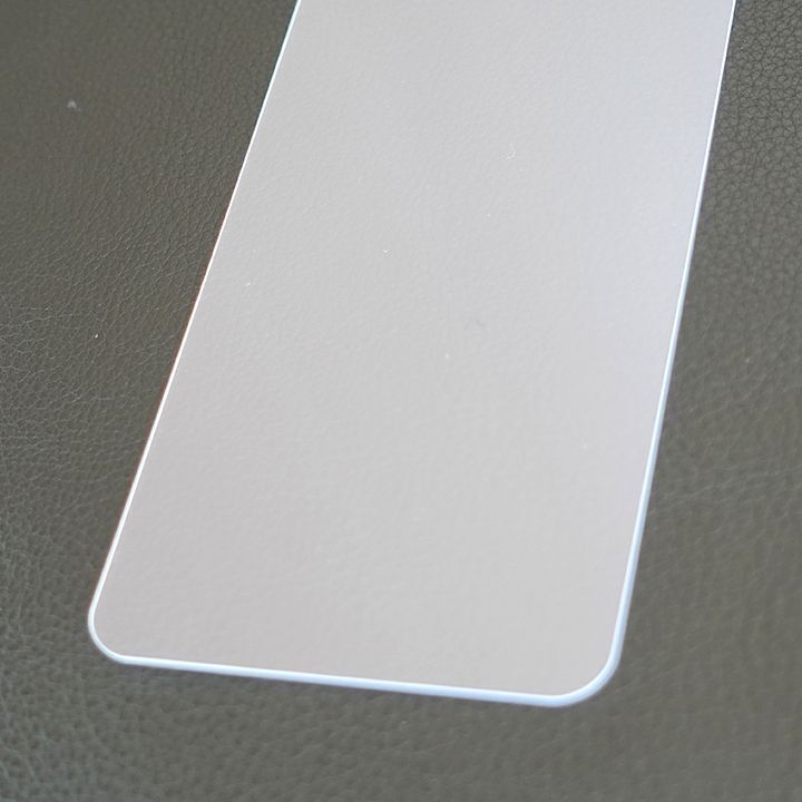 ・9H強度。ガラス素材で強い9Hの表面硬度を持っているため、ナイフなどの鋭利なものを当てても傷がつきません