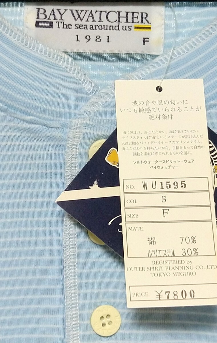 【BAY WATCHER】The sea around us■カットソー ■Tシャツ■半袖Tシャツ■Fサイズ■未使用品■シミ有り■ジャンク扱い■ボーダー柄