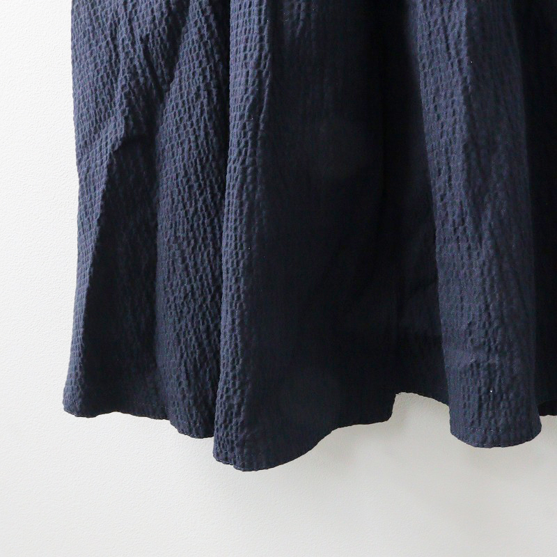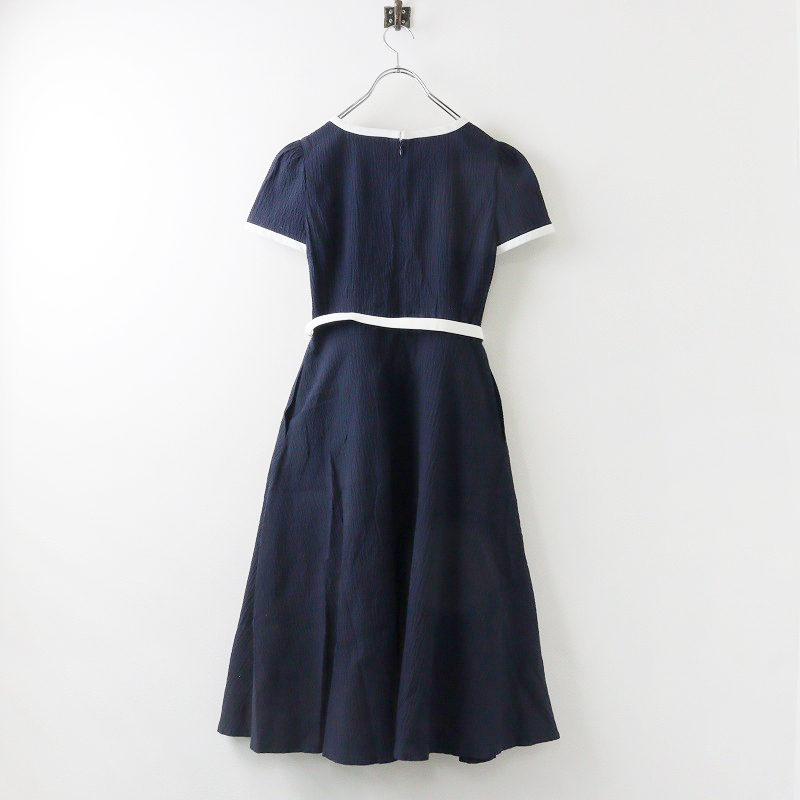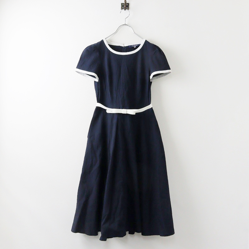 2023年 エムズグレイシー M'S GRACY リップル加工 ウエストリボン ワンピース 36/ネイビー プルオーバー 半袖【2400013871471】