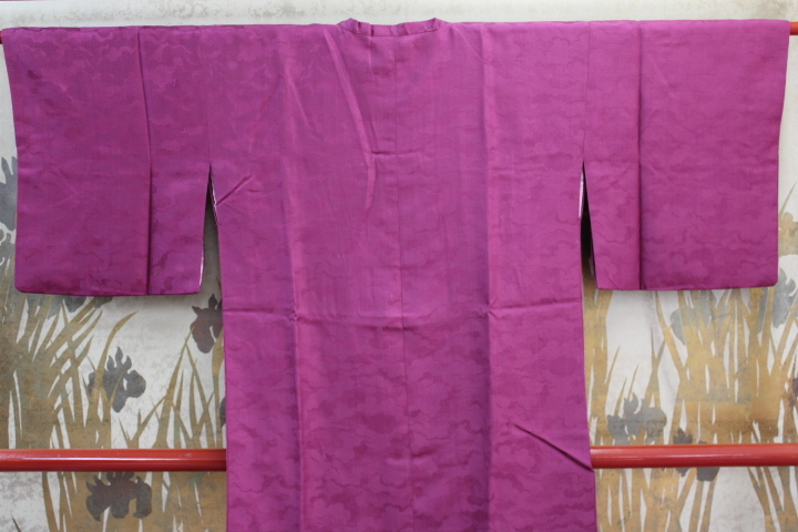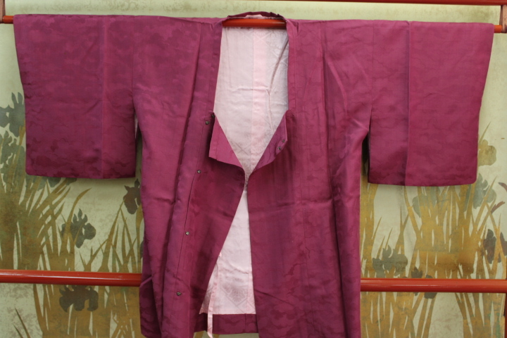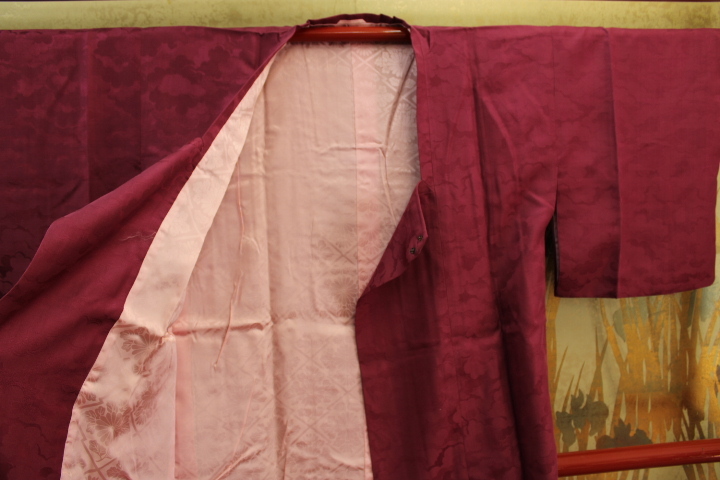 道行コートコレクション 正絹綸子地クモ取りの地文様ワイン色