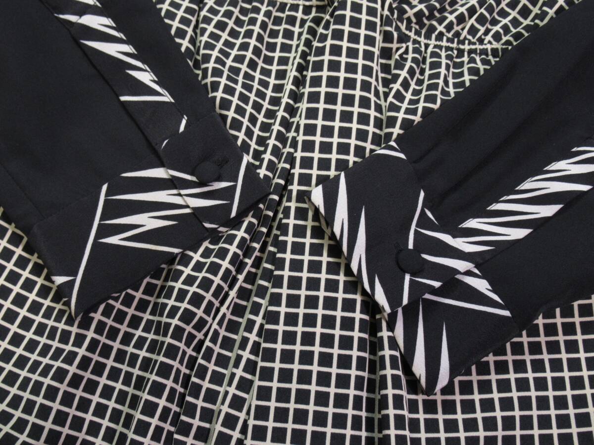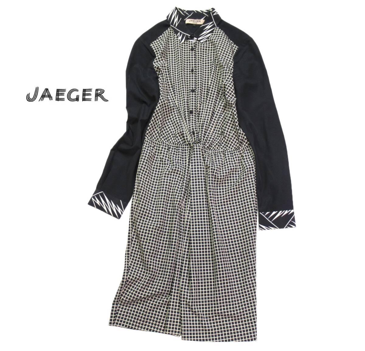 イエガー ワンピース サイズ:6 お色:黒、ベージュ 素材:本体、袖:ポリエステル100 別布 絹100% 平置き実寸で 肩幅36 身幅44 ウエスト部幅31(ゴム入りで伸縮性あり)着丈93 袖丈59㎝位です。 |