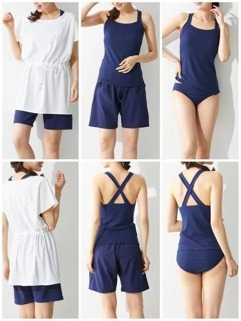 新品☆LL♪白×紺系♪水着4点セット♪チュニック・タンキニ・ボトム☆b901