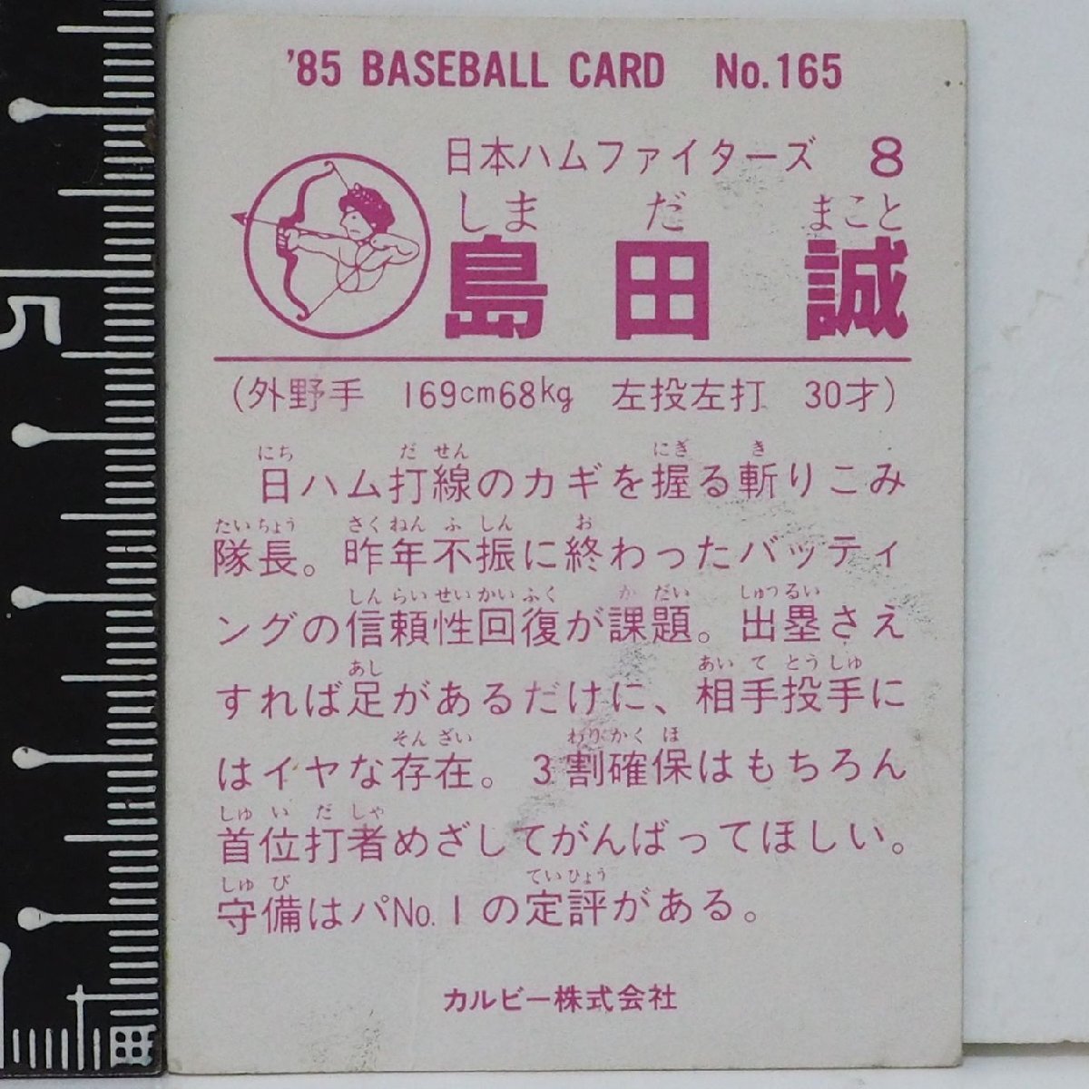 85年 カルビー プロ野球カード No.165【島田 誠 外野手 日本ハ ムファイターズ】昭和60年 1985年 当時物 Calbee おまけ 食玩 BASEBALL 中古