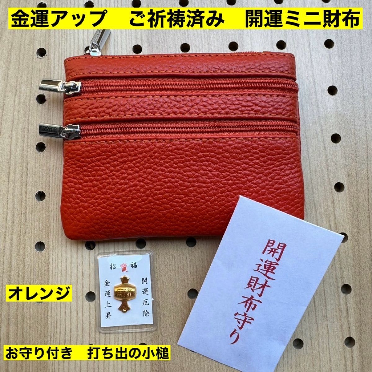 金運アップ 牛本革 開運ミニ財布 オレンジ 打ち出の小槌 ご祈祷済み 軽量 小銭入れ コインケース 高天原本宮 財布 新品 未使用
