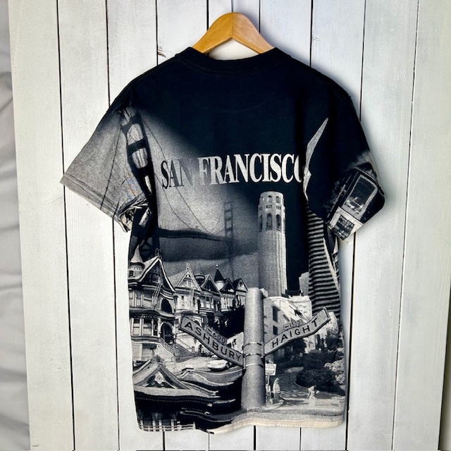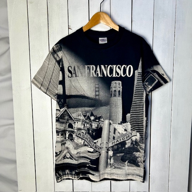 T●37 USA古着 00s DEADSTOCK SANFRANCISCO 両面転写プリント モノクロTシャツ S DELTA PROWEIGHT オールド スーベニア ①