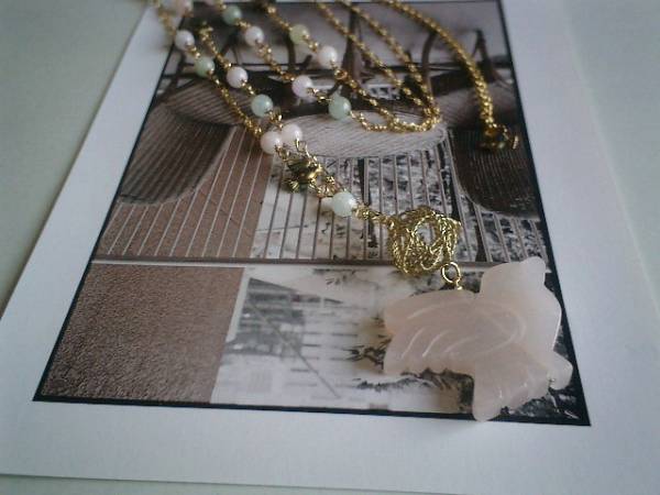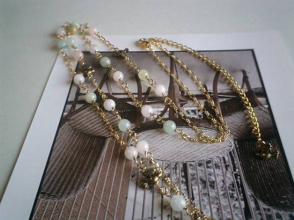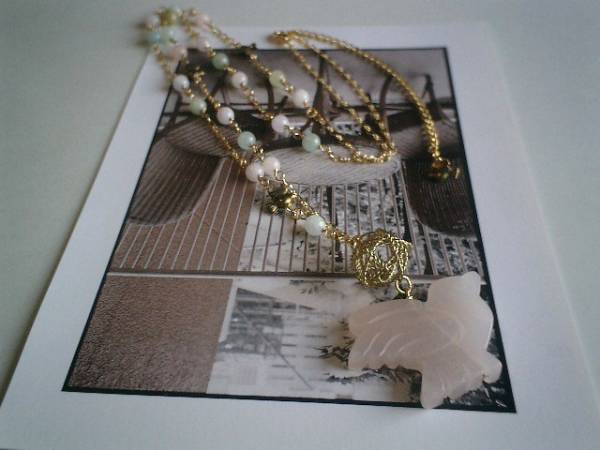 ガールズ・コレクション・・シリーズです♪小鳥マニア・繊細なパステルベリルとピーチクォーツの小鳥さんのネックレスです♪6ミリの丸玉のベリルにピーチクォーツの小鳥さんは40×32ミリ位です♪ワイヤーリングや小鳥さんのチャームを合わせて大人可愛い表情です♪長さは全長92センチ位で調節自由です♪♪トップは5センチ位です♪お揃いのブレスレットも出品しています♪シンプルで飽きのこないいつまでも着けられるデザインを考えて作りました!ハンドメイドをご理解頂いてノークレーム、ノーリターンでお願いします