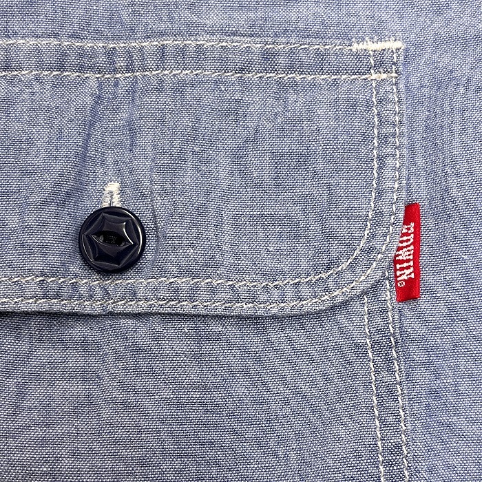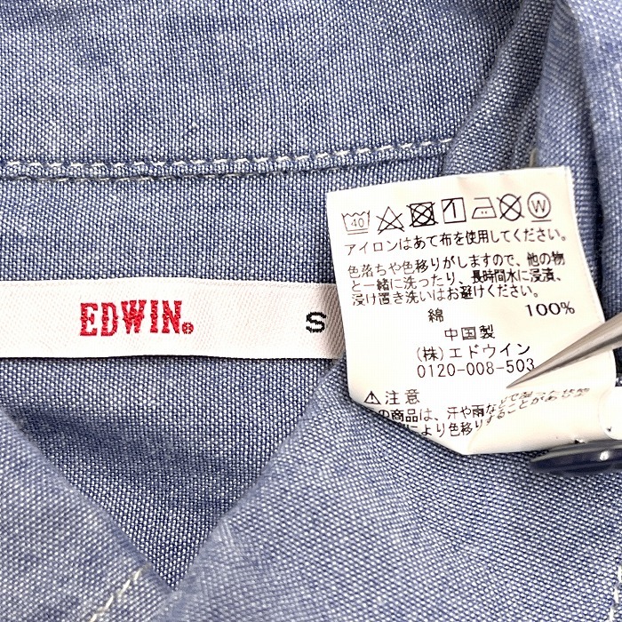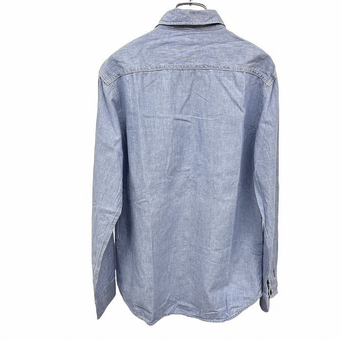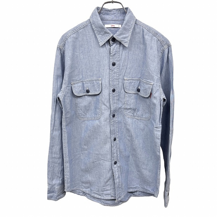| 商品タイトル | エドウィン EDWIN シャンブレー シャツ 無地 長袖 両胸フラップポケット ロングスリーブ 綿100% コットン100% S ブルー 青 メンズ |