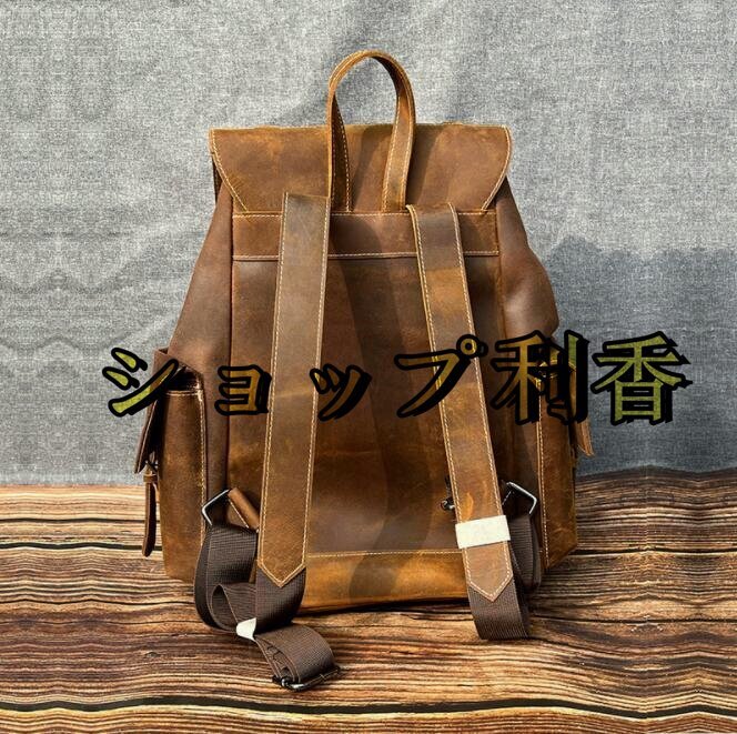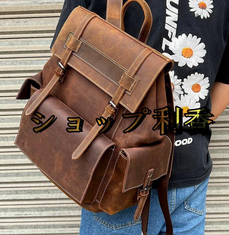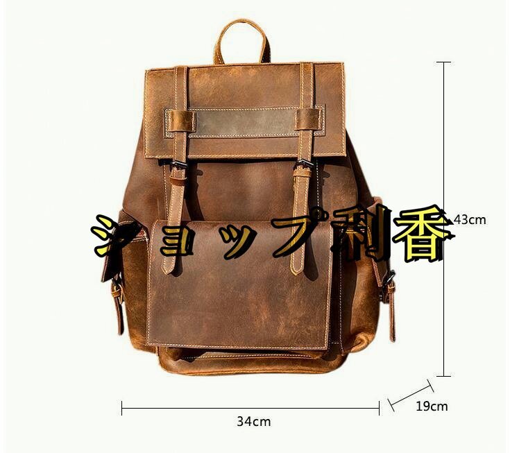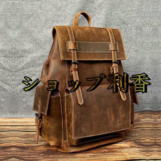 本革 リュックサック 100%牛革 カーキ 紳士用 A4対応 大容量 メンズ 鞄 通勤対応 通勤通学 トラベル 旅行